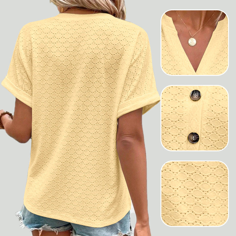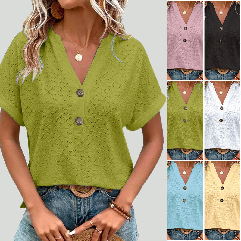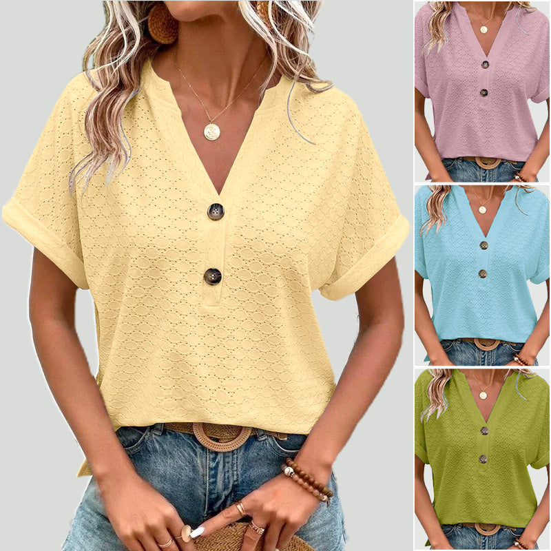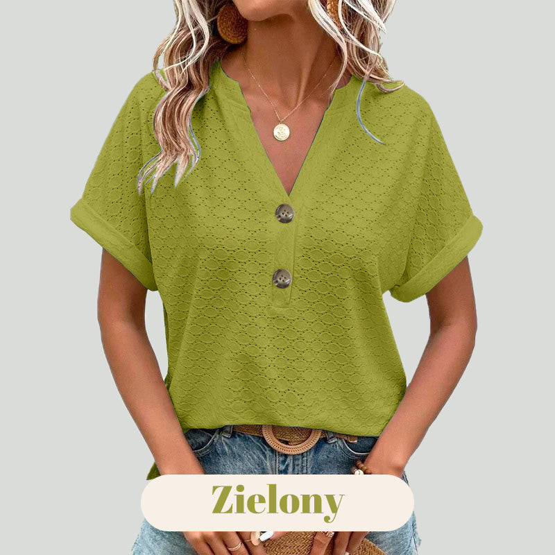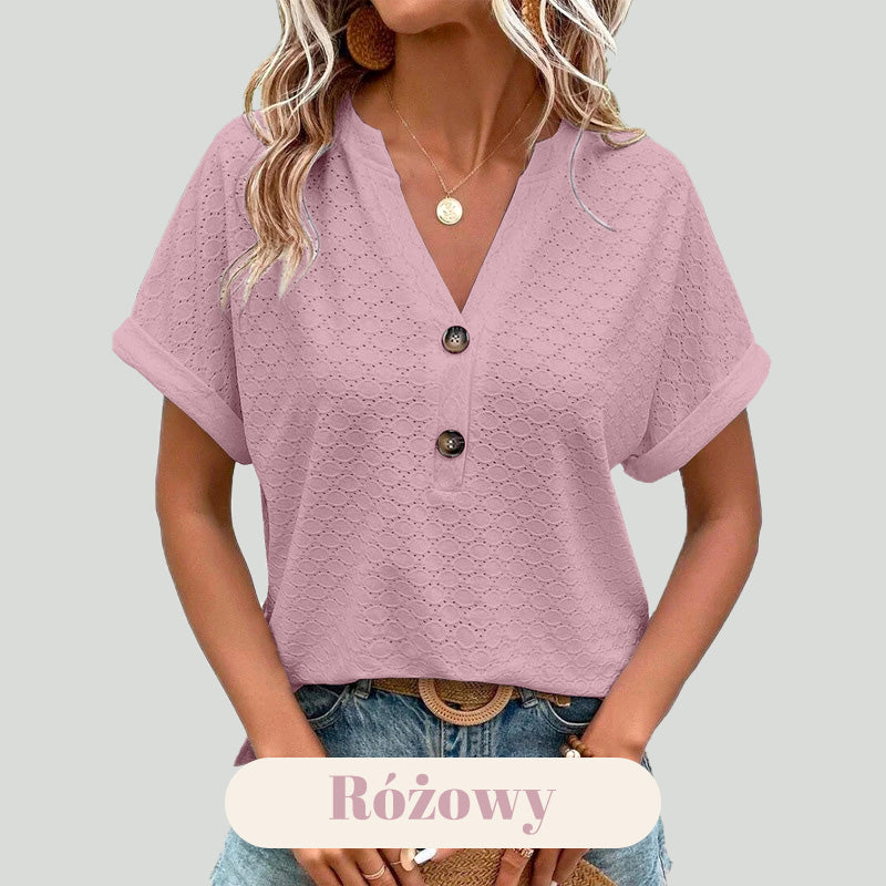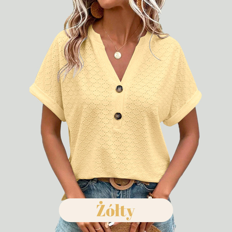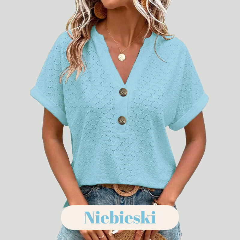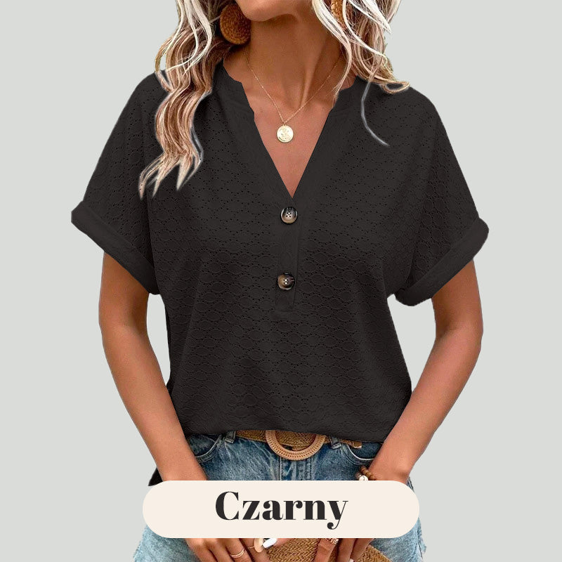 1 * Damska Casualowa Koszulka z Dekoltem V i 2 Guzikami