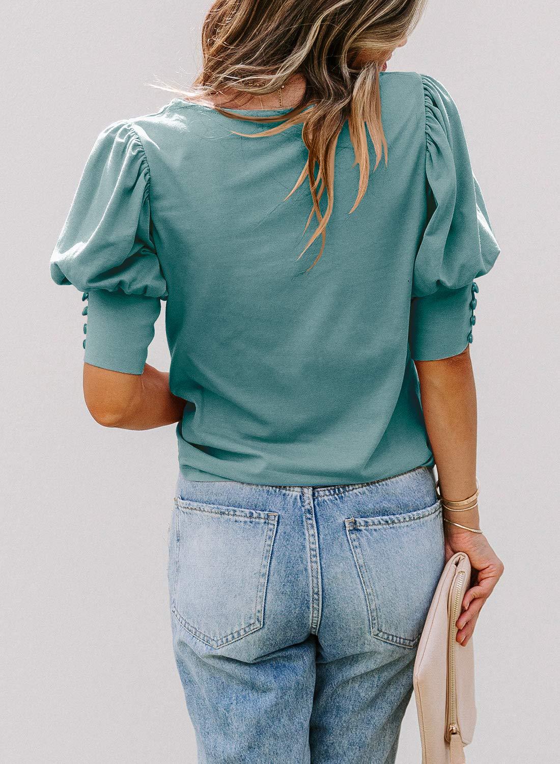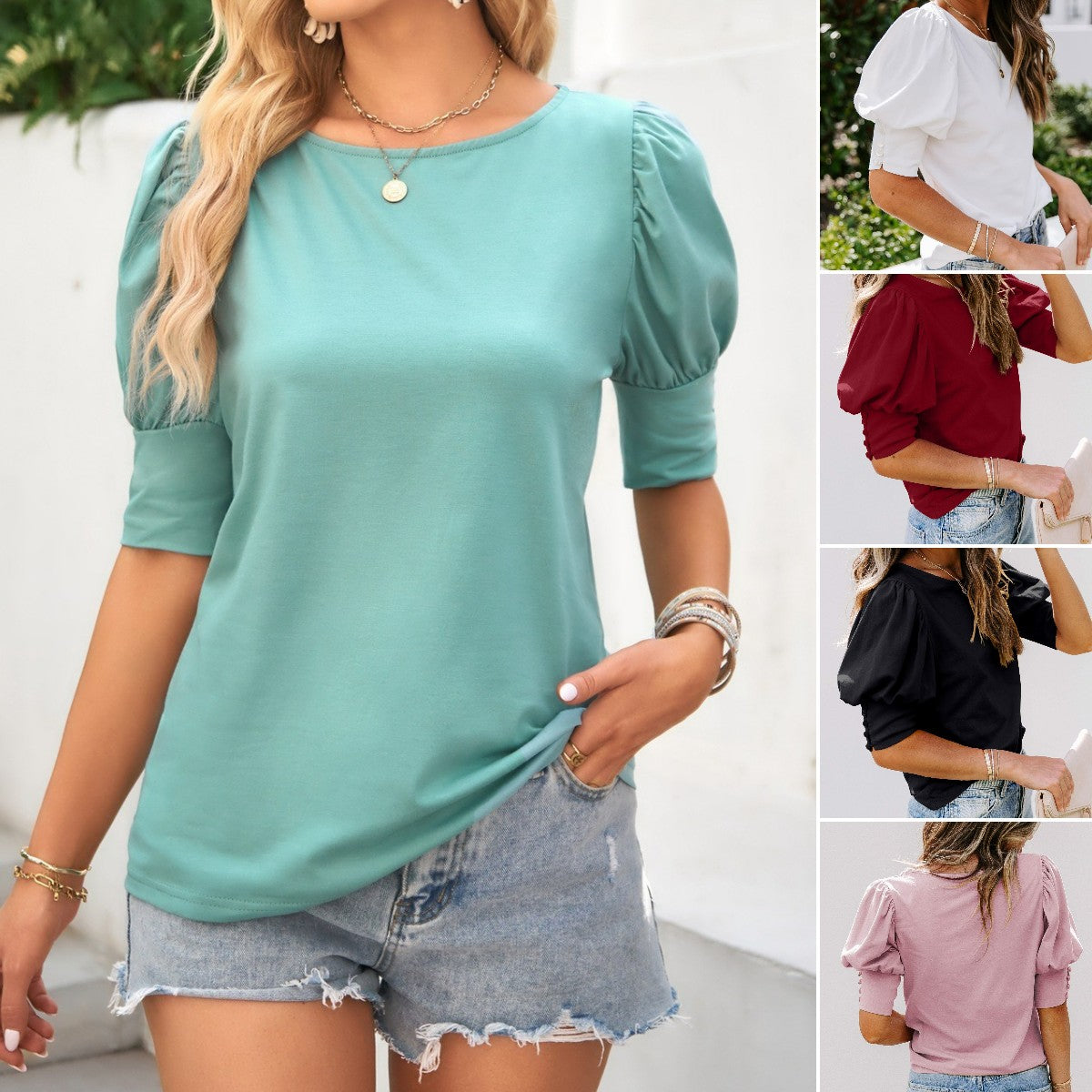 😊 Ta koszulka damska z okrągłym dekoltem i krótkim rękawem w jednolitym kolorze ma luźny krój, dzięki czemu możesz cieszyć się zrelaksowanym i wolnym czasem.