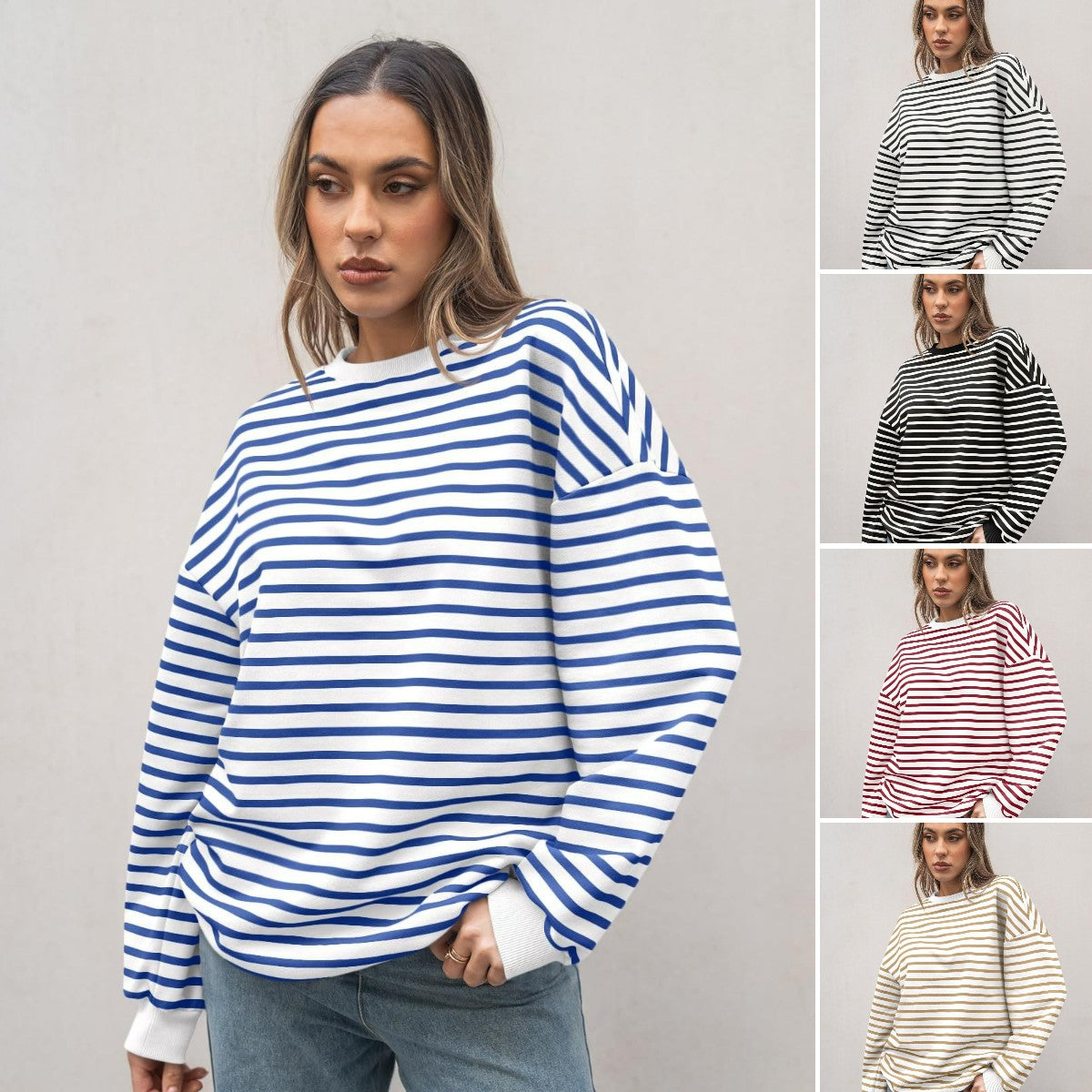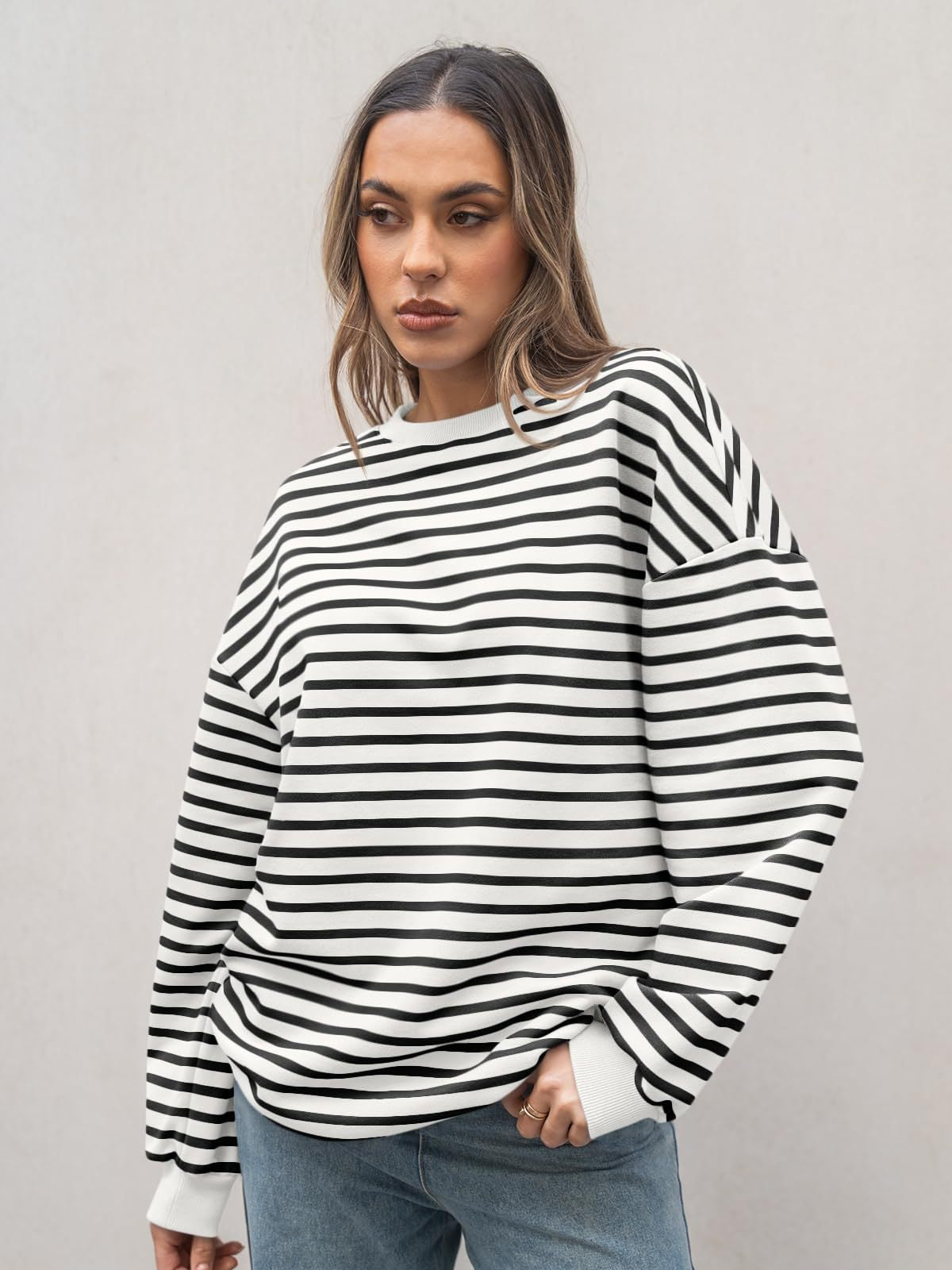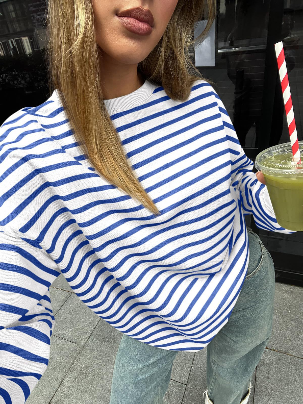 🌈 Ta kolorowa bluza w paski ma okrągły dekolt i podkreśla żywy sportowy styl.