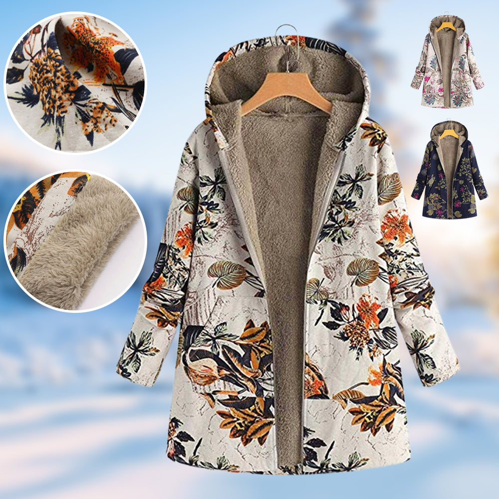 1 * Damska zimowa kurtka z kapturem i nadrukiem z polaru