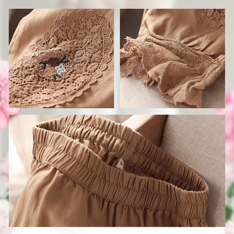 Te damskie haftowane koronkowe lniane bawełniane spodnie Bloomers są wykonane z bawełnianego lnu o wysokiej gęstości, odświeżającego, oddychającego i elastycznego. Dzięki specjalnej technologii tkania i wykańczania łączy w sobie zalety bawełny i lnu, który jest bliższy naturze. Naturalnie pozyskiwany materiał oraz drukowanie i barwienie są stosowane w celu zapewnienia niełatwego blaknięcia i zachowania kształtu.