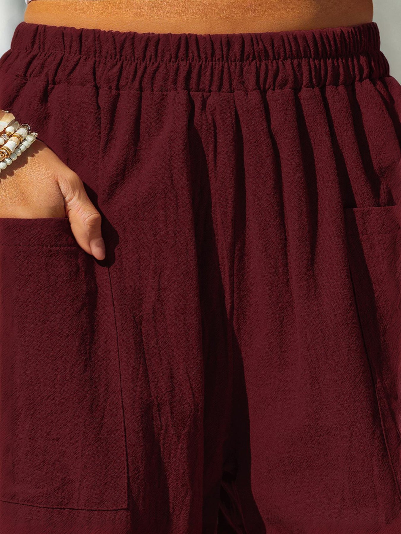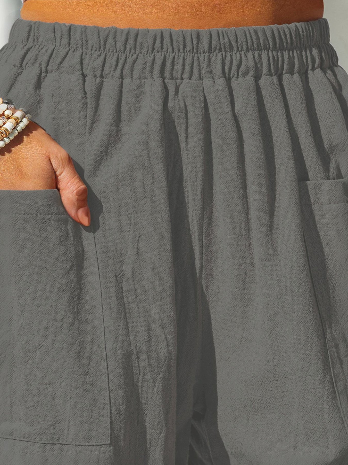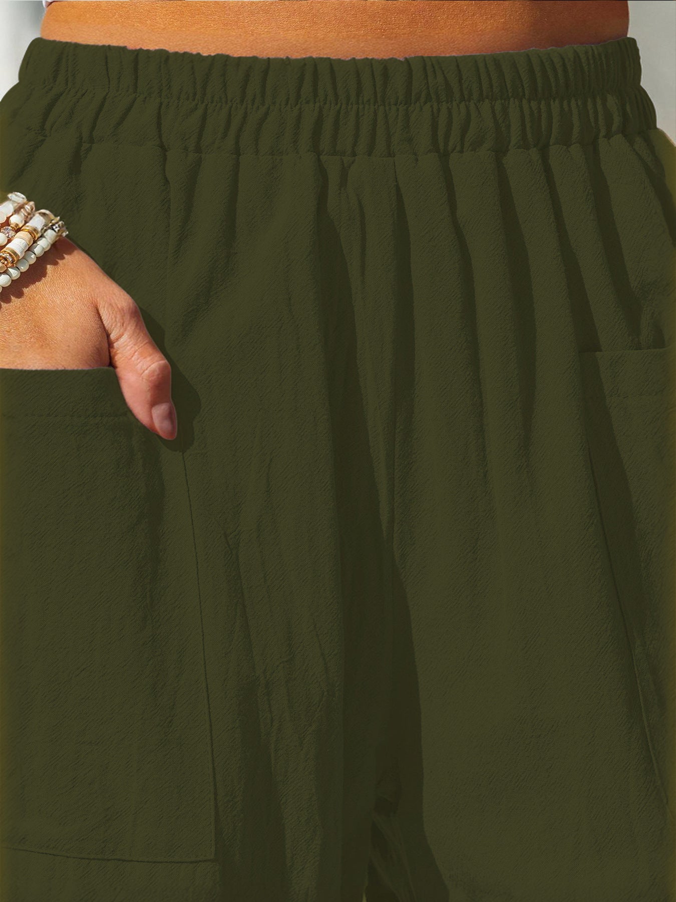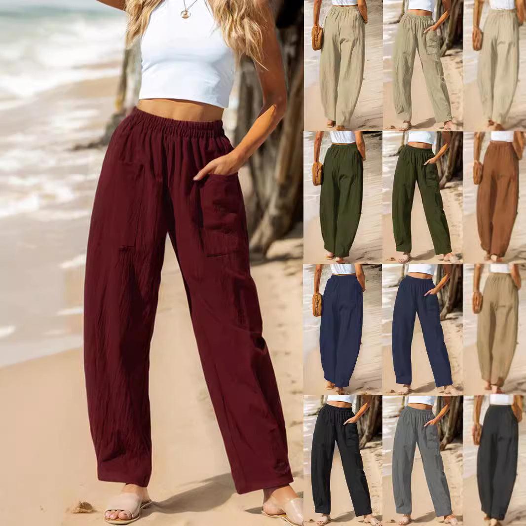 Wygodne tkaniny bawełniane i lniane, ukazujące luźną, wakacyjną stylizację.