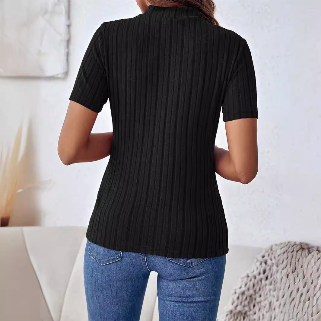 Stylowy, prążkowany design: świeża opcja na powitanie lata! Ta damska koszulka z krótkim rękawem ma wyrafinowany, prążkowany krój, dzięki czemu zapewnia lekkość i wygodę.