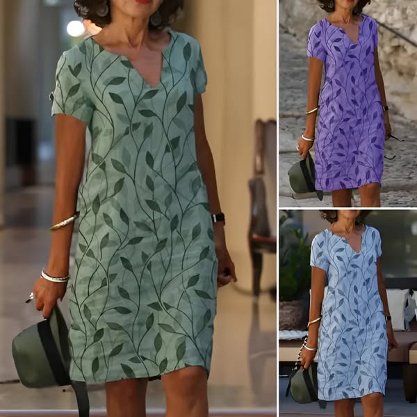 Dodaj elegancji swojej garderobie dzięki sukience Deniel z nadrukiem i dekoltem w serek w kształcie litery A — tam, gdzie elegancja spotyka codzienną wygodę!