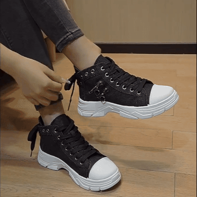 Modne i wygodne : te wysokie tenisówki bez trudu łączą swobodny wygląd dżinsu z wygodą butów sportowych, dzięki czemu nie tylko będziesz wyglądać fantastycznie, ale także będziesz czuć się komfortowo przez cały dzień.