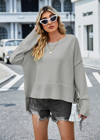 🌞👯💖Bluza w jednolitym kolorze: Prosta konstrukcja swetra, łatwa do dopasowania, podkreślająca ogólną czystość.