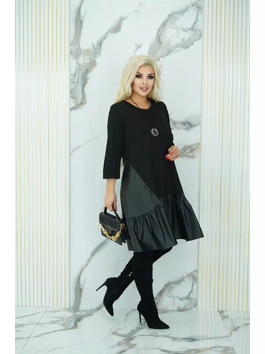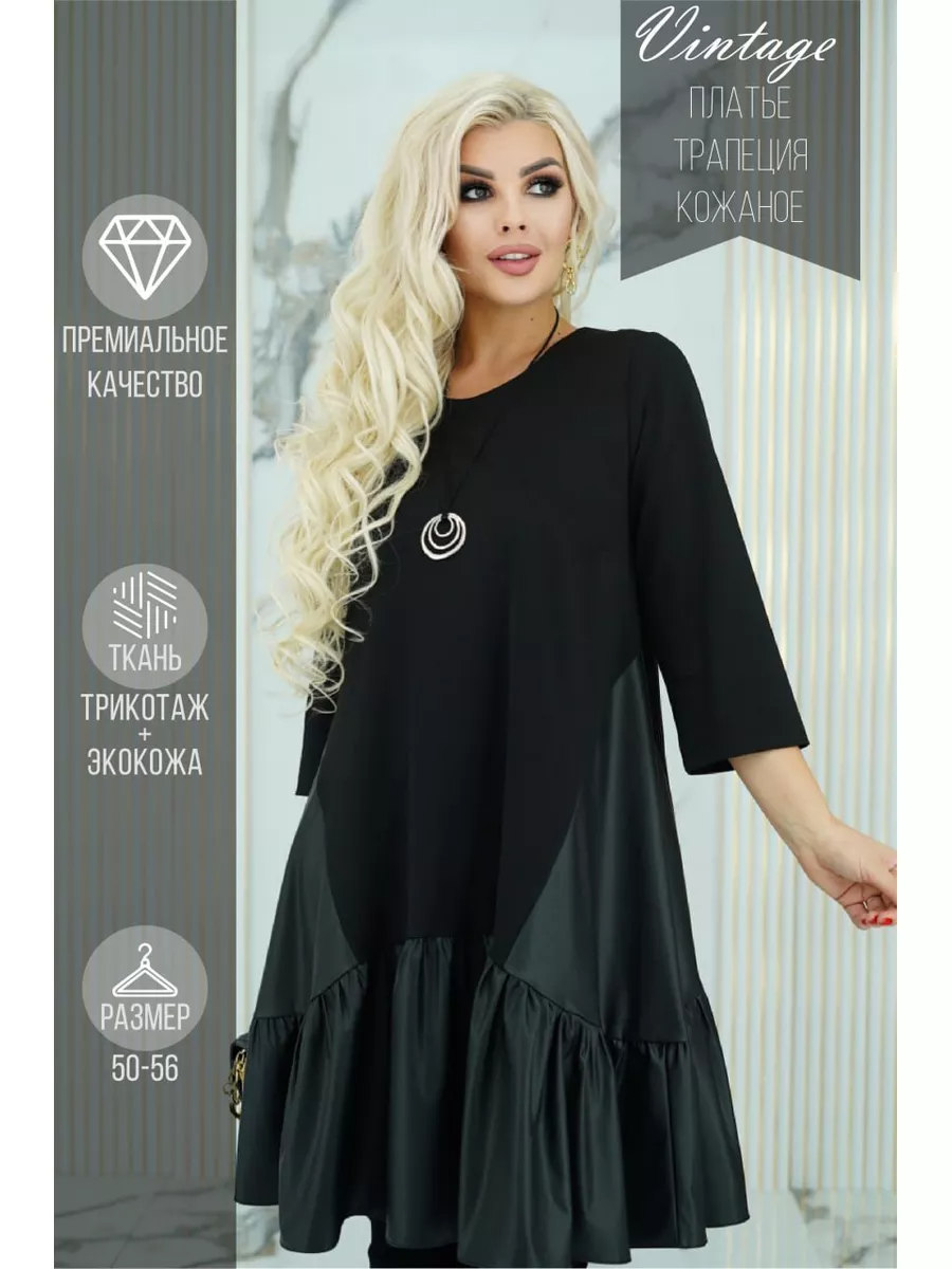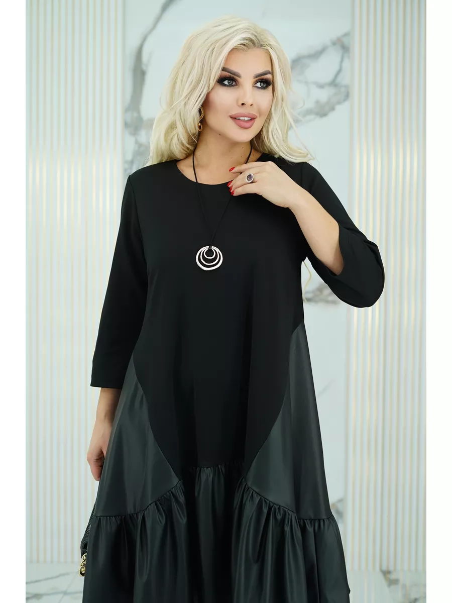 [S-5XL]💃 Elegancka retro丨Patchworkowe plisy丨Czarna sukienka o kroju litery A z rękawami trzy czwarte
