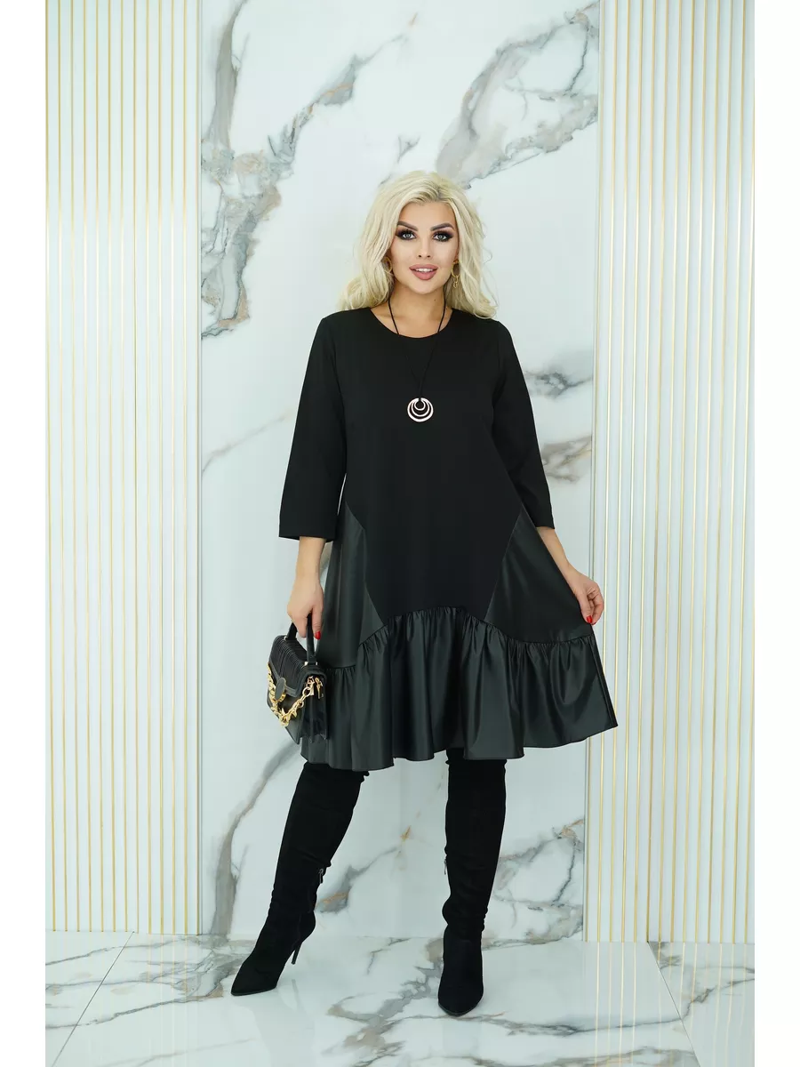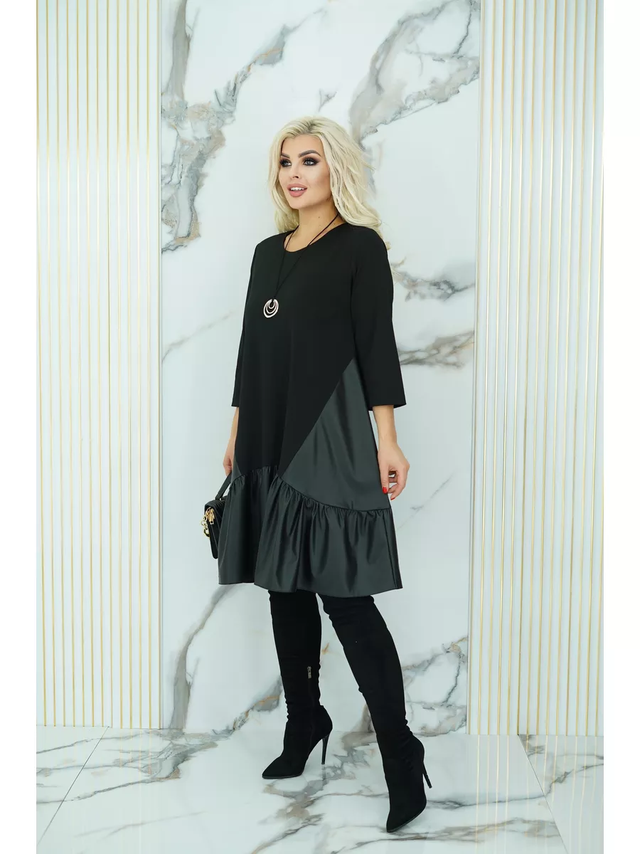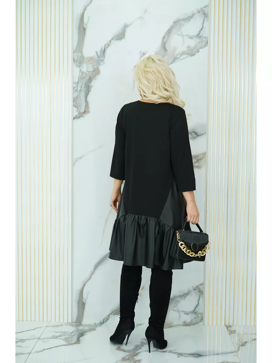 [S-5XL]💃 Elegancka retro丨Patchworkowe plisy丨Czarna sukienka o kroju litery A z rękawami trzy czwarte