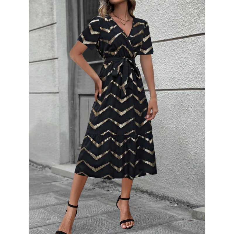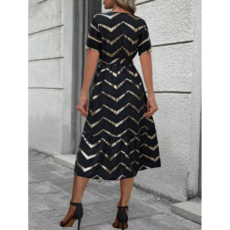 Drukowany wzór w paski: Wykwintny drukowany wzór w paski, pokazujący modę i zmysł artystyczny. 🌸