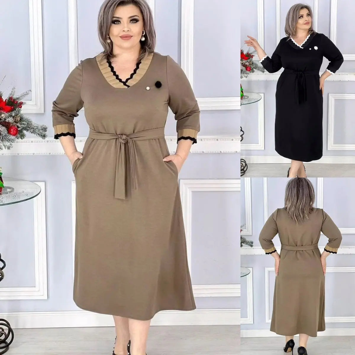 [S-5XL]🍁🍂Elegancka sukienka w jednolitym kolorze, plus size