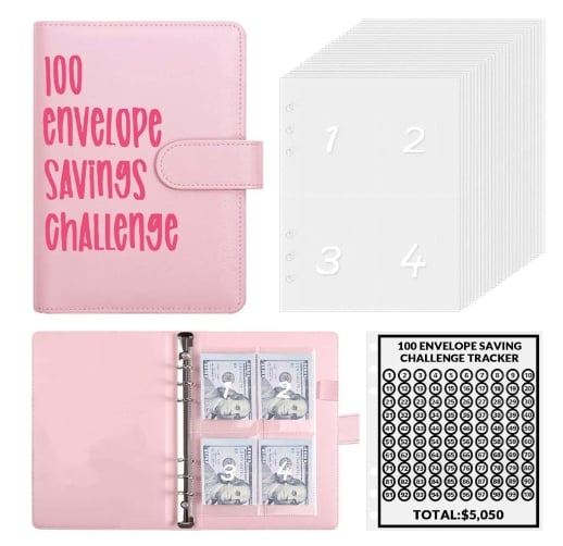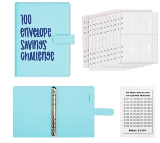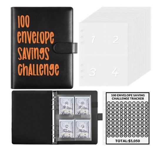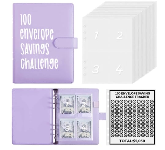📏 W zestawie segregator w formacie A5 (9 cali wysokości x 7 cali szerokości), 1 laminowany tracker wielokrotnego użytku, woreczki z etykietami 1-100, co pozwala w tradycyjny sposób zaoszczędzić 5050 USD