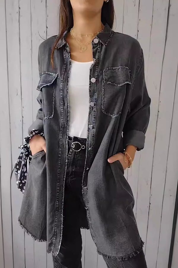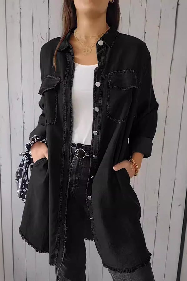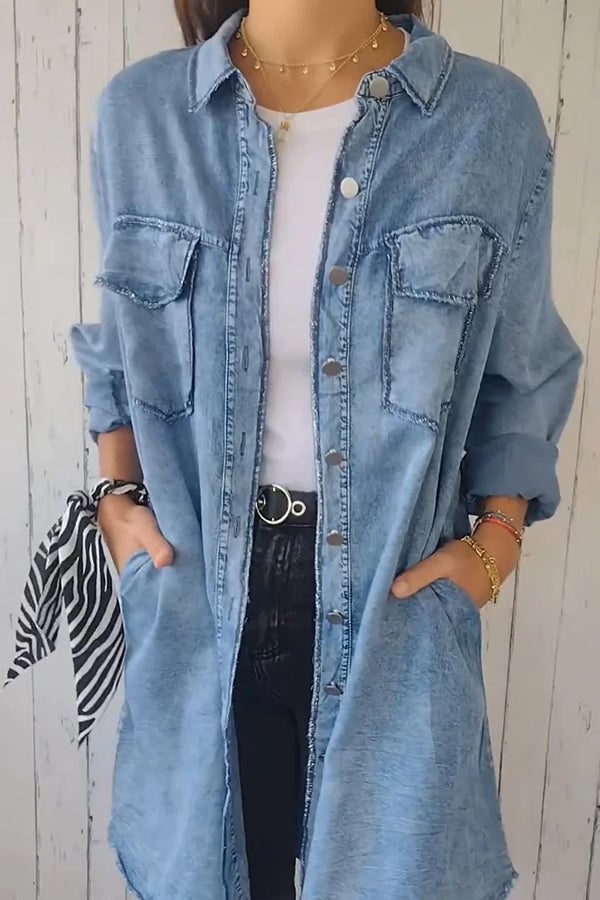 ✨🧥 Upgruj swoją garderobę z naszą modną i wszechstronną dżinsową kurtką z długim rękawem. Idealny do każdego stroju, ten ponadczasowy kawałek łączy styl i funkcjonalność bez wysiłku. 🌸