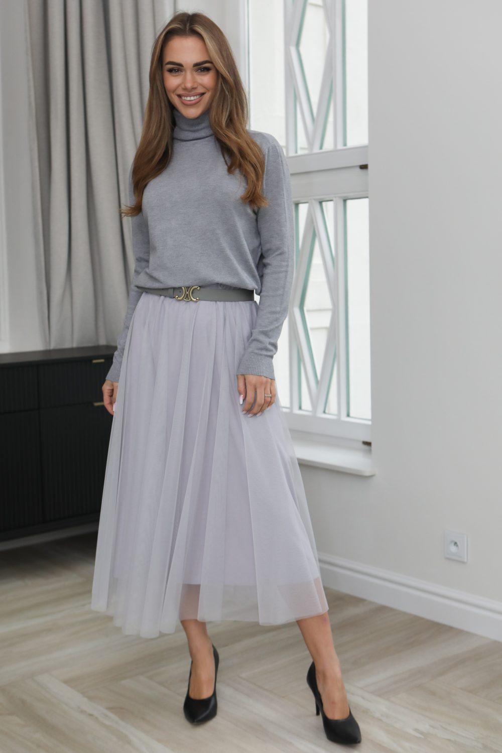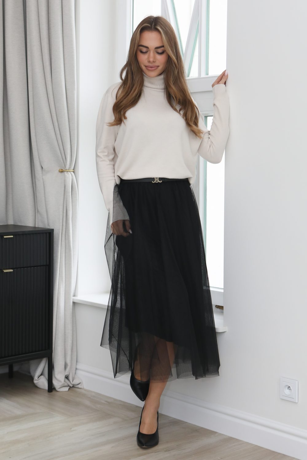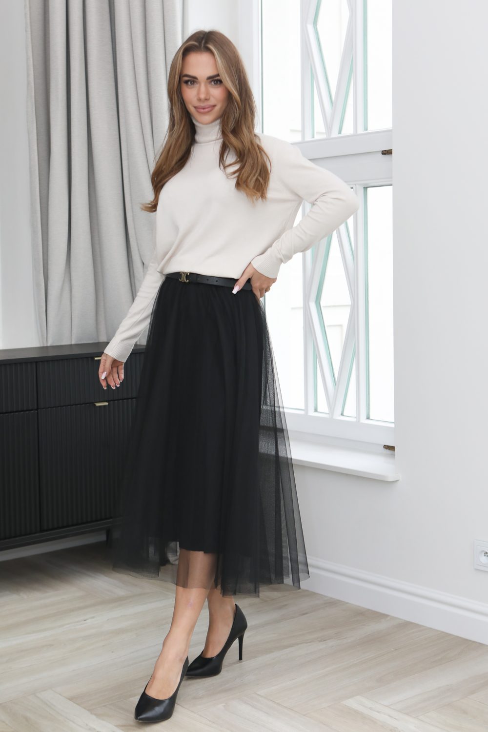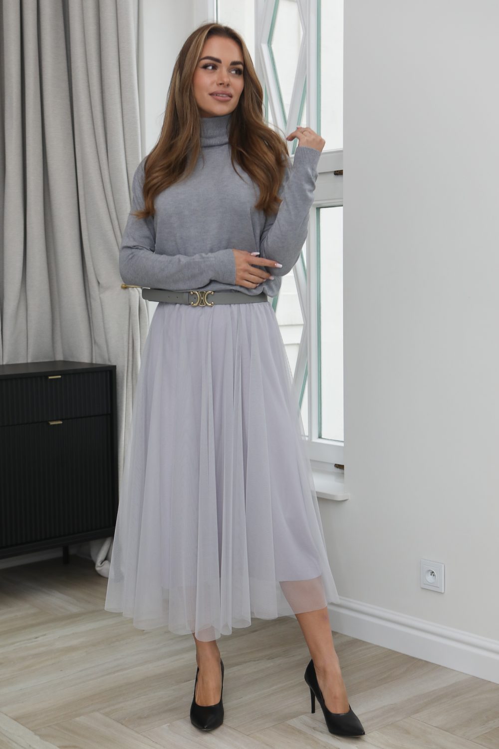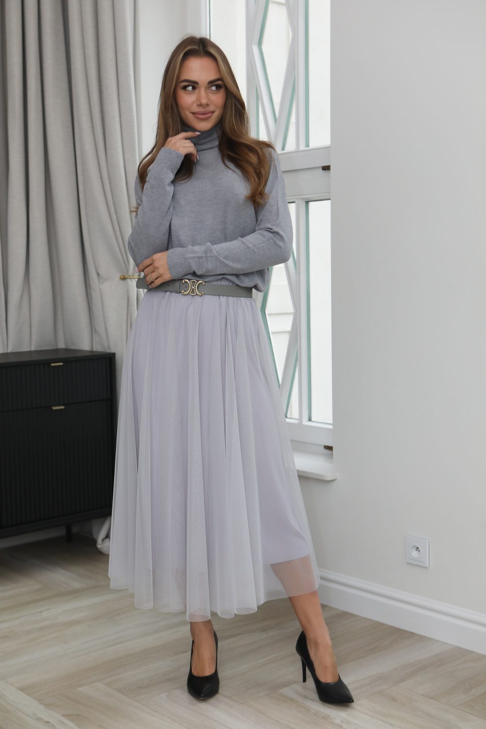 Tiulowa spódnica midi z szeroką gumką w pasie zapewniającą wygodę noszenia. Wykonana jest z miękkiego tiulu, dzięki czemu poczujesz się bardzo komfortowo, przytulnie i kobieco. Będzie pasować do wielu stylizacji, zarówno ze szpilkami, jak i ciężkimi butami – model spódnicy będzie odpowiedni na każdą porę roku. Zarówno na wielką noc, jak i na spacer po parku.