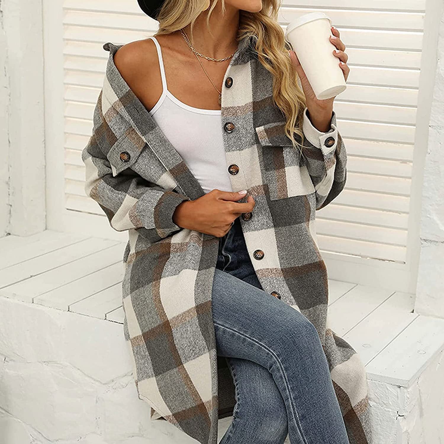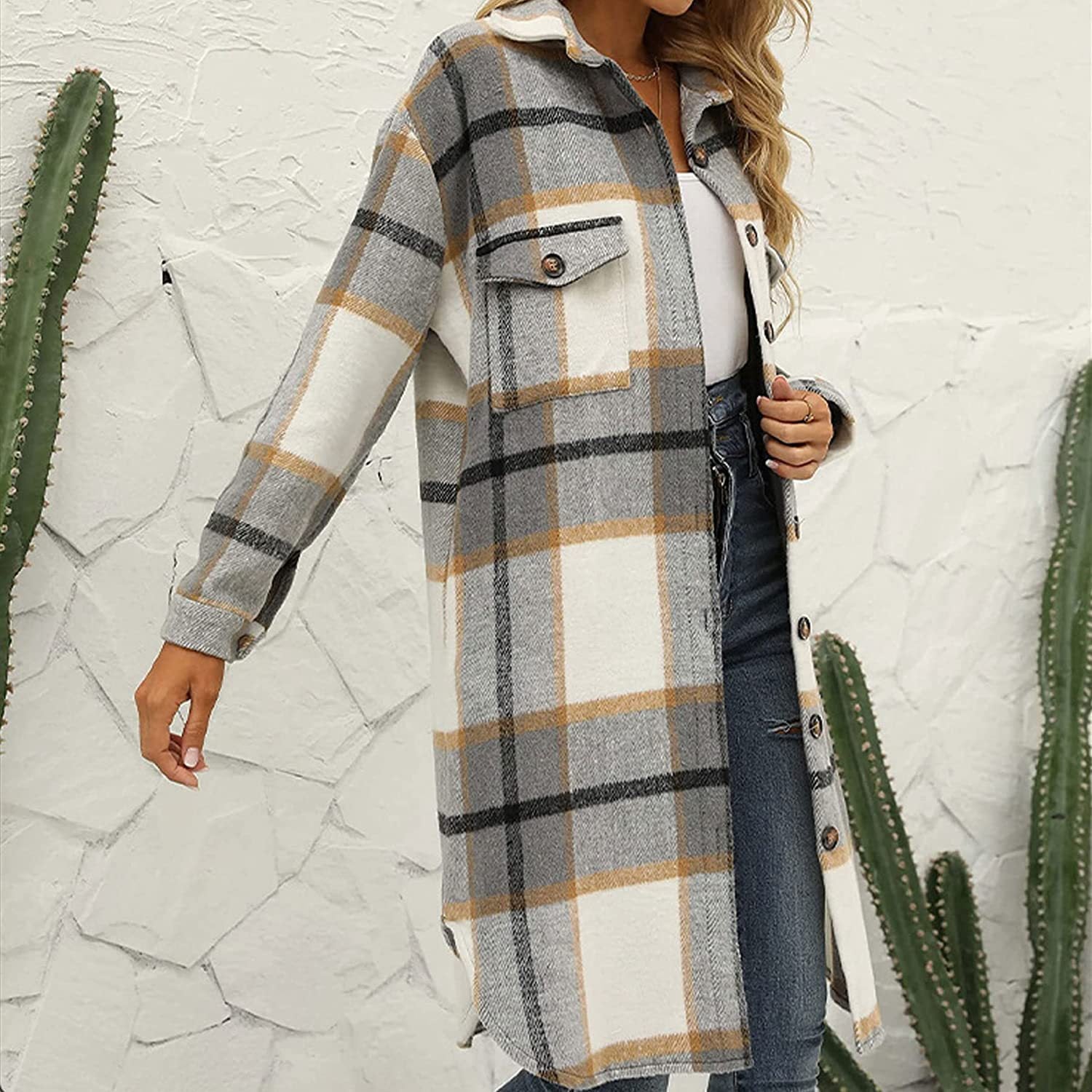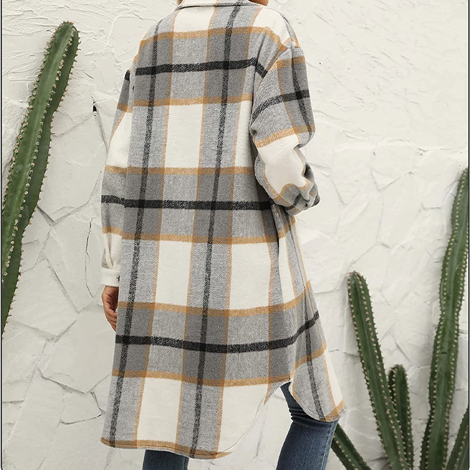 Dopasowanie: Swobodny, luźny płaszcz w jesienno-zimową kratę dla kobiet i pań, łatwy do dopasowania do topu, t-shirtu, spódnicy, legginsów, codziennych spodni, świetnie komponuje się ze swetrem, dżinsami i butami.