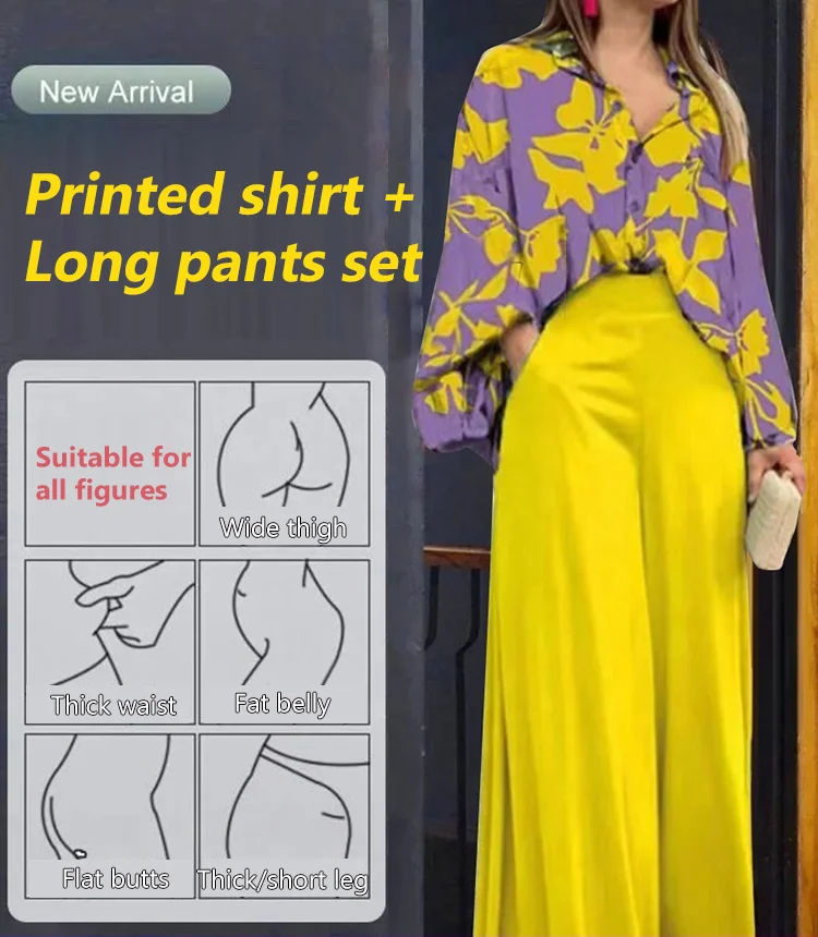 ✔ Cechy: Dwuczęściowe stroje na lato dla kobiet, oversize, długie bufiaste rękawy, zapinane na guziki topy koszulowe, modna bluzka koszulowa z kwiatowym nadrukiem, elastyczne spodnie z szerokimi nogawkami, wysoki stan, otwarty przód, luźny krój, solidny komplet długich spodni, codzienna piżama .