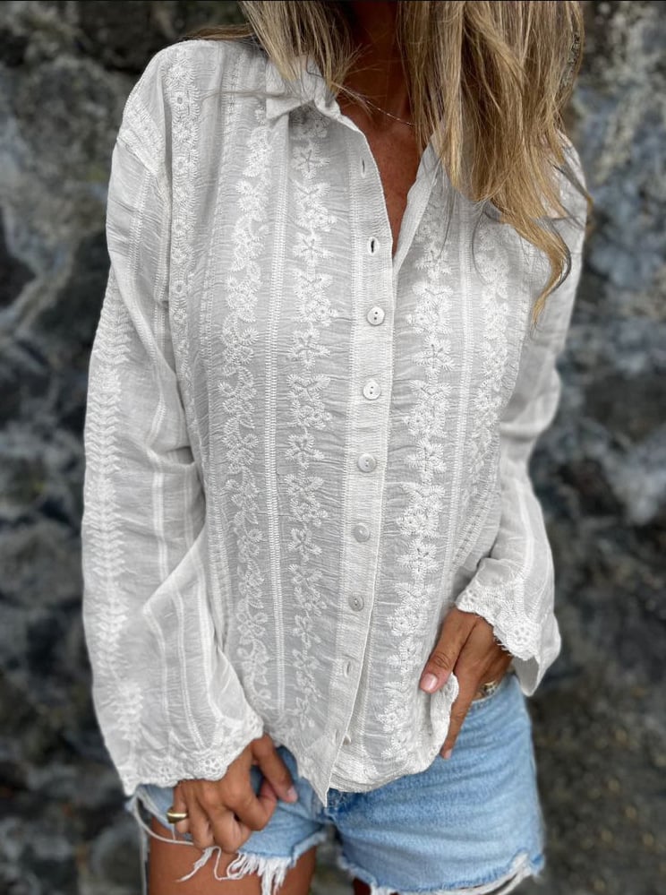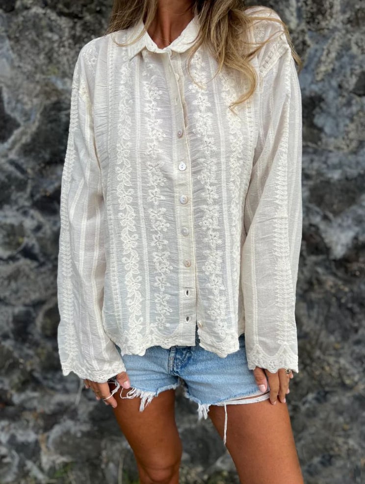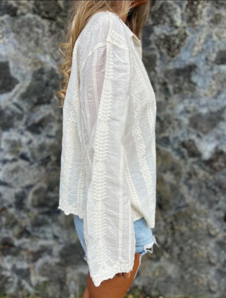 Elegancki, oddychający i pełen kwiatowego uroku 🌻🌸. Ta haftowana koszula to twoje nowe miejsce na słoneczne dni i zrelaksowane wibracje. 😎👚