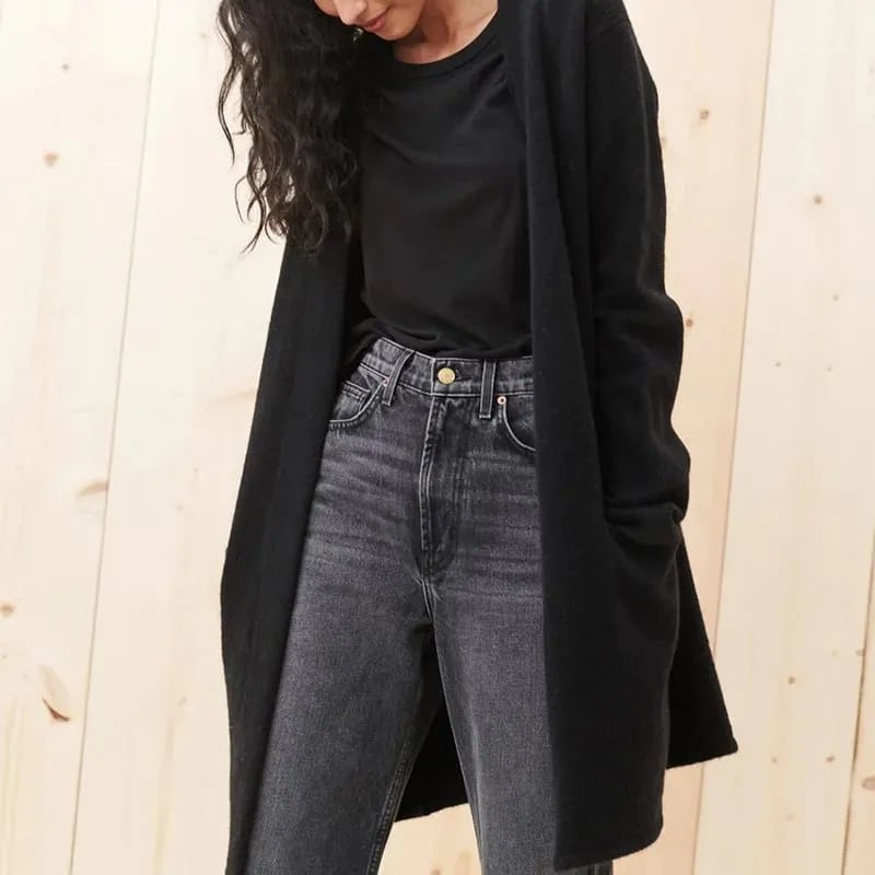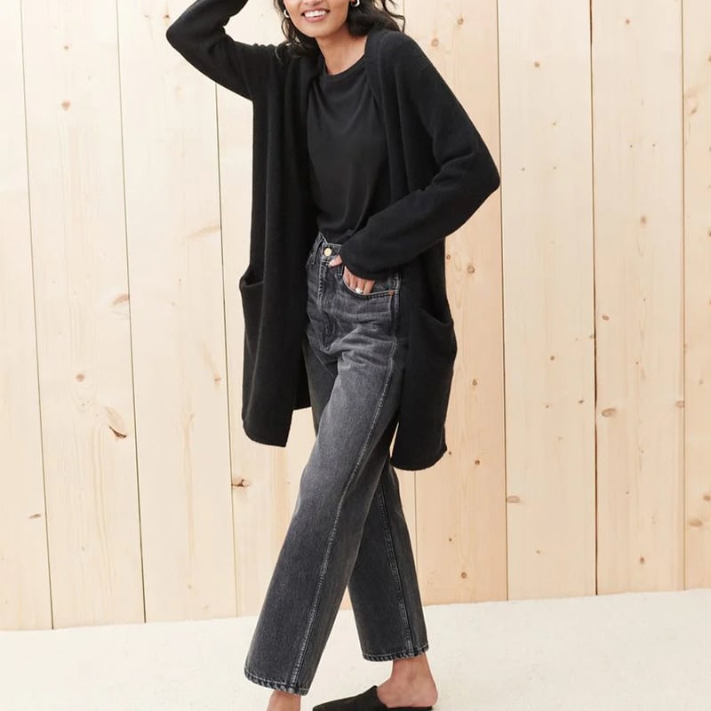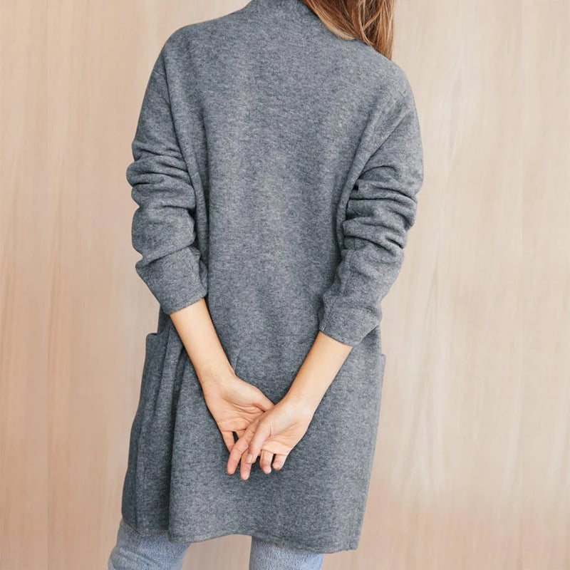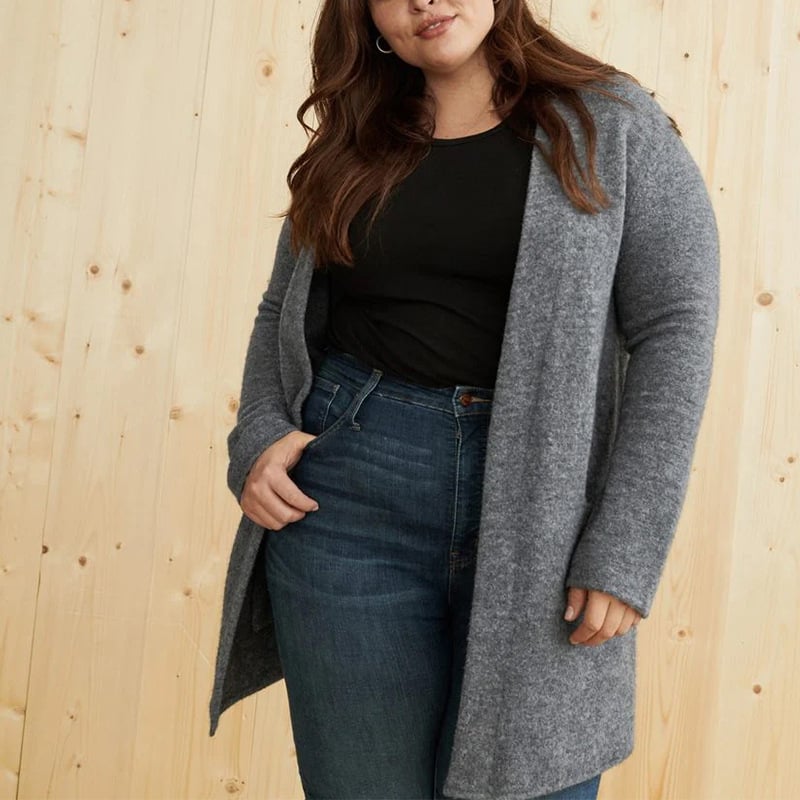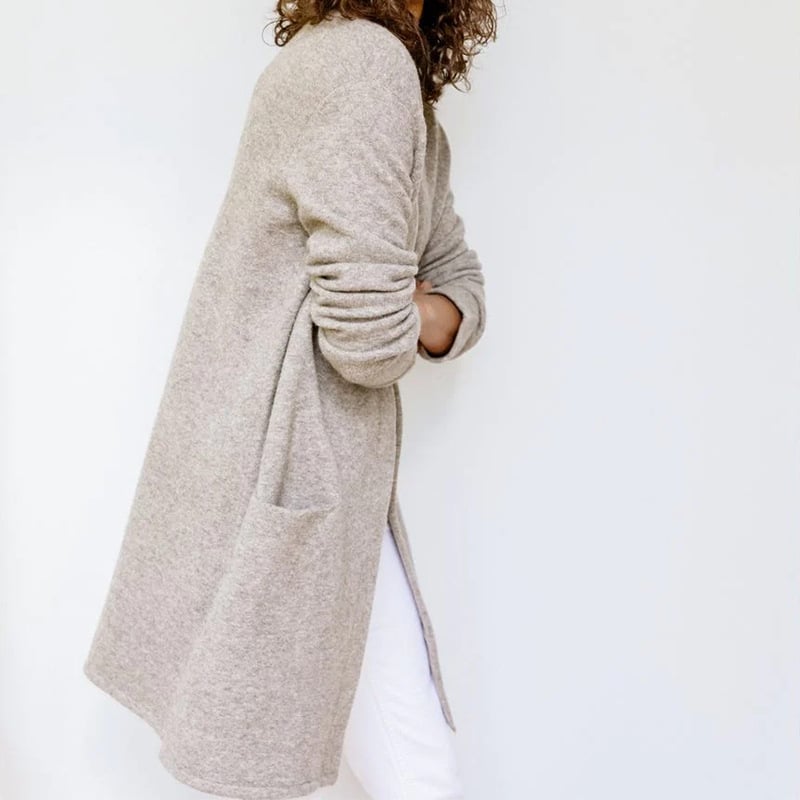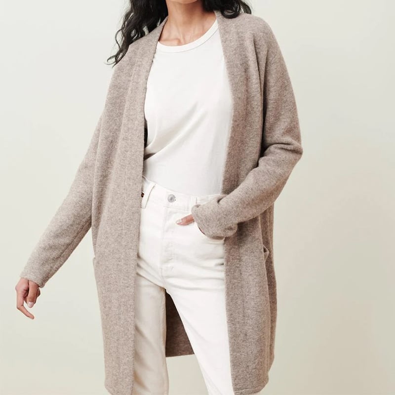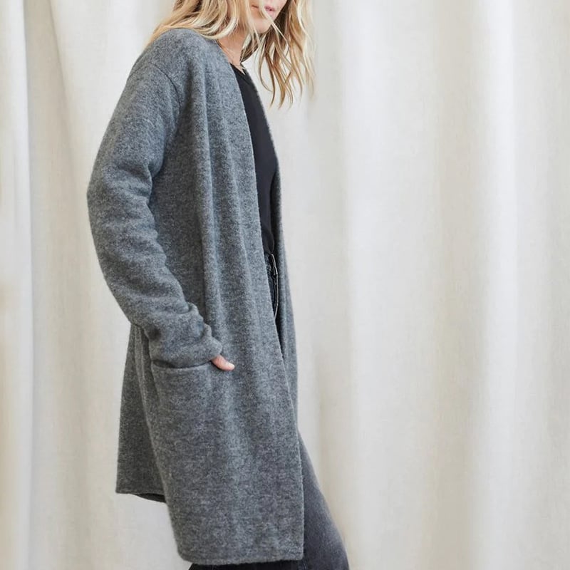Pół sweter, pół płaszcz, wszystko przytulne. Yak jest super miękki, lekki i łatwy do układania warstwami.