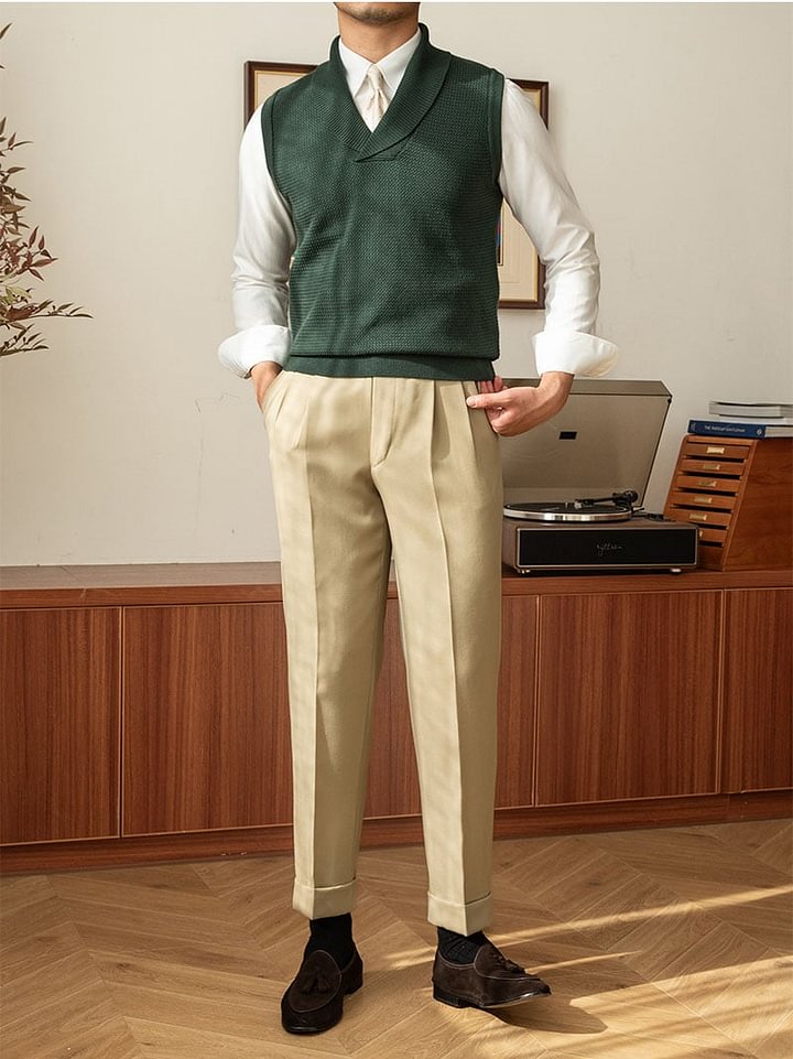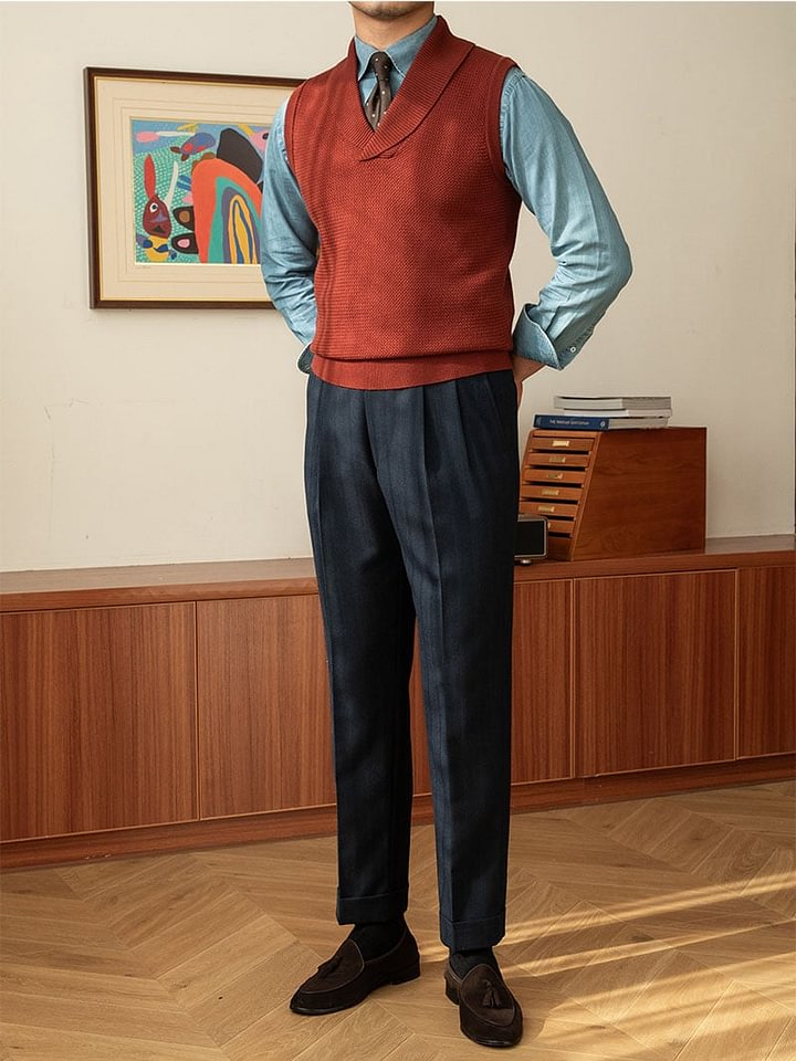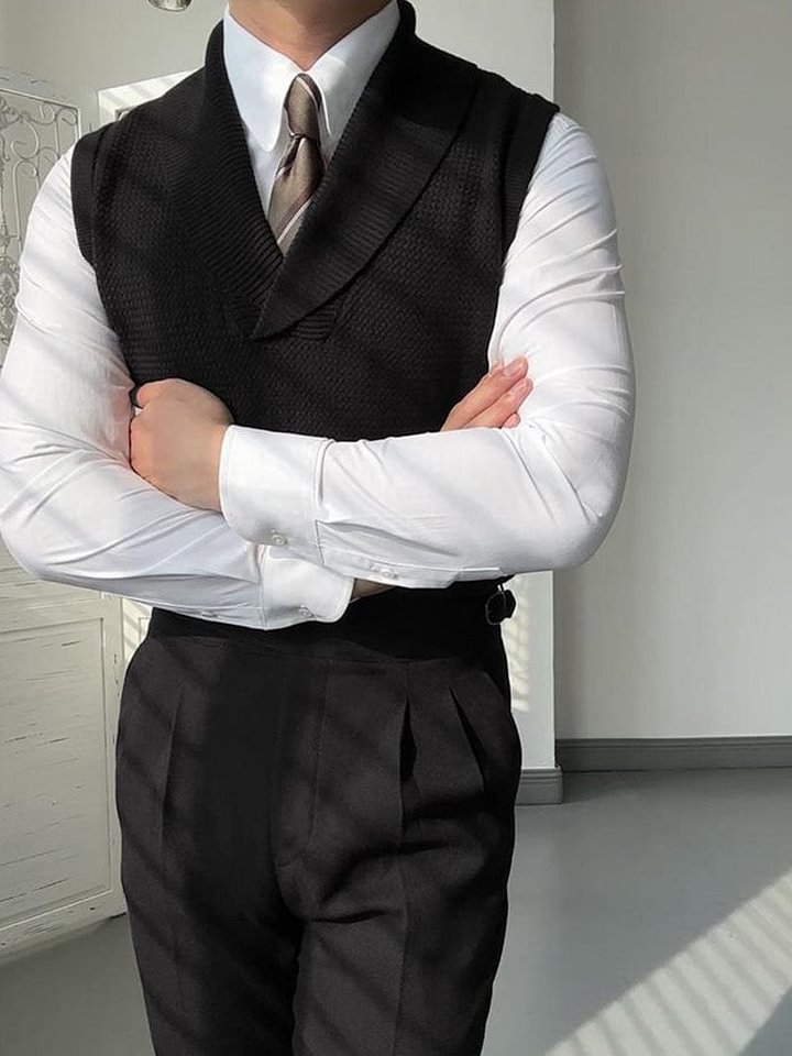 Podnieś swój styl naszą solidną kamizelką z dzianinową kamizelką. Projekt bez rękawów zapewnia wszechstronność, podczas gdy standardowa grubość i techniki z dzianiny komputerowej zapewniają przytulne ciepło. Ta kamizelka, wykończona eleganckim kołnierzem z dekoltem w szpic, jest idealnym ulepszeniem garderoby.
