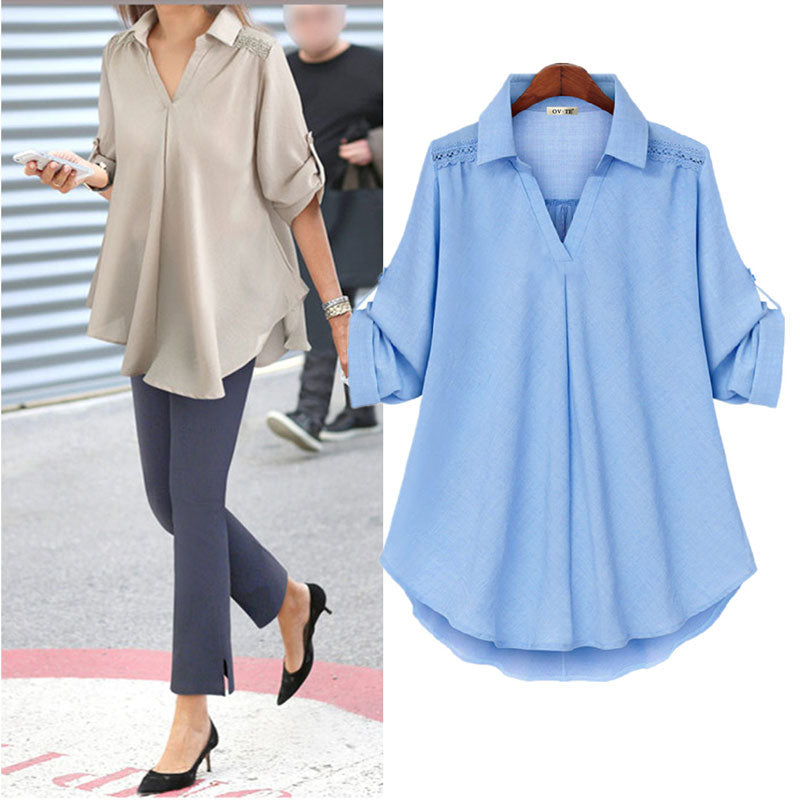 Opakowanie zawiera: 1xStreet fashion V-ring dla kvinnor casual, luźna i wygodna koszula.