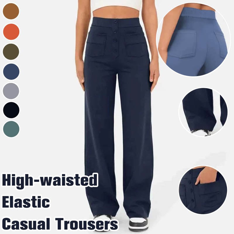 - 1 * elastyczne spodnie z prostymi nogawkami z wysokim stanem