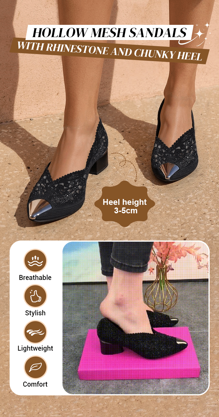 💥GORĄCA WYPRZEDAŻ 50% TANIEJ✨Sandały z siateczki z kryształkami i grubym obcasem