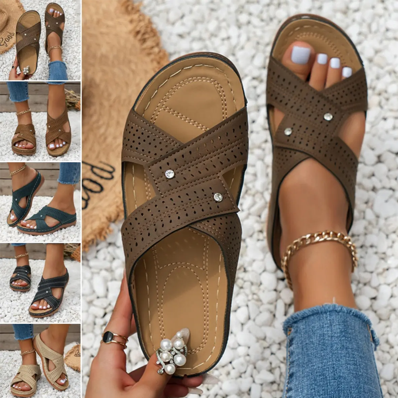 Zawartość zestawu: 1 × para casualowych sandałów wsuwanych z ażurowym wzorem i krzyżowymi paskami