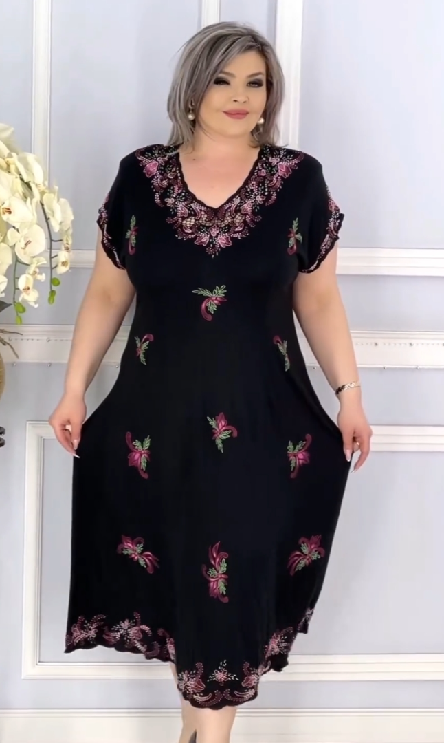 Czarna sukienka kwiatowa pochlebna wszyscy, bez względu na twój rozmiar. Ten elegancki projekt jest odpowiedni na każdą okazję: od codziennych podróży po kostium biznesowy.