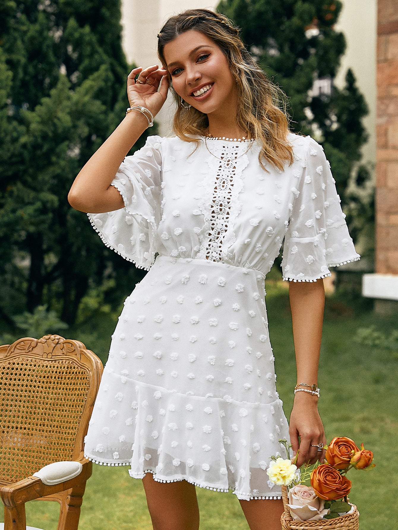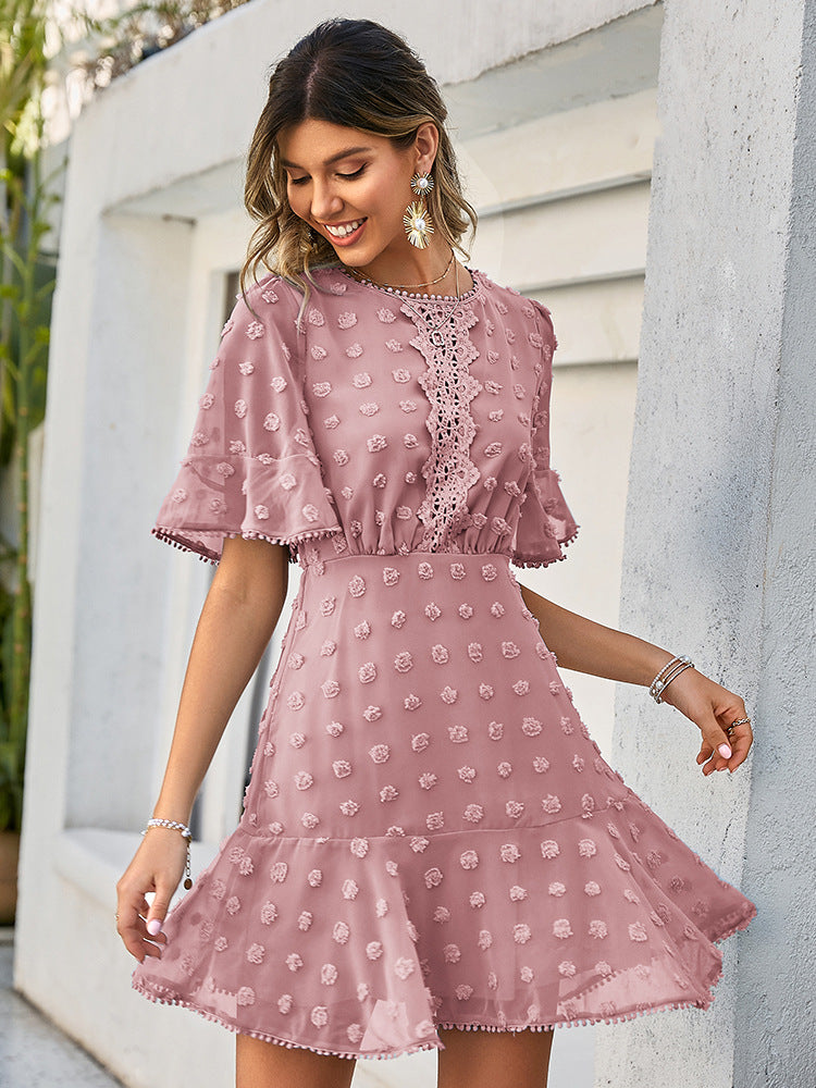 Wykwintny koronkowy wzór 🌸: Ta koronkowa sukienka ozdobiona jest wykwintną koronkową dekoracją na dole i mankietach, która jest delikatna i urocza, dodając Twojemu strojowi romantyzmu i elegancji.