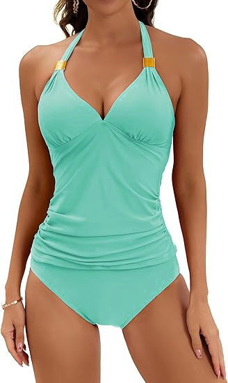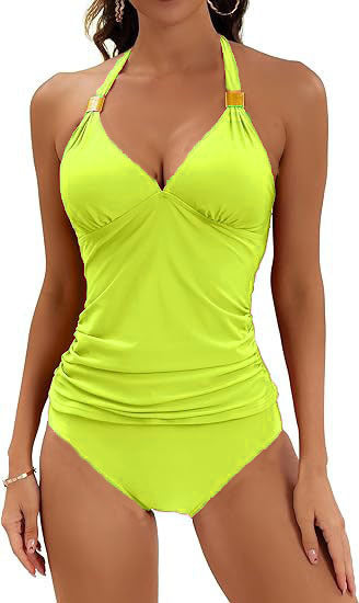 WYGODNE DOPASOWANIE: Dekolt typu halterneck i marszczona konstrukcja zapewniają wsparcie i podkreślają naturalne krągłości, dzięki czemu czujesz się pewnie i bezpiecznie.