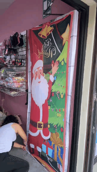 😇 【Projekt dekoracji】 Ta dekoracja drzwi ma motyw Świętego Mikołaja, Piernikowego Ludzika i choinki, ukazując wyjątkową świąteczną kreatywność i tworząc niepowtarzalną i wesołą świąteczną atmosferę w Twoim domu.