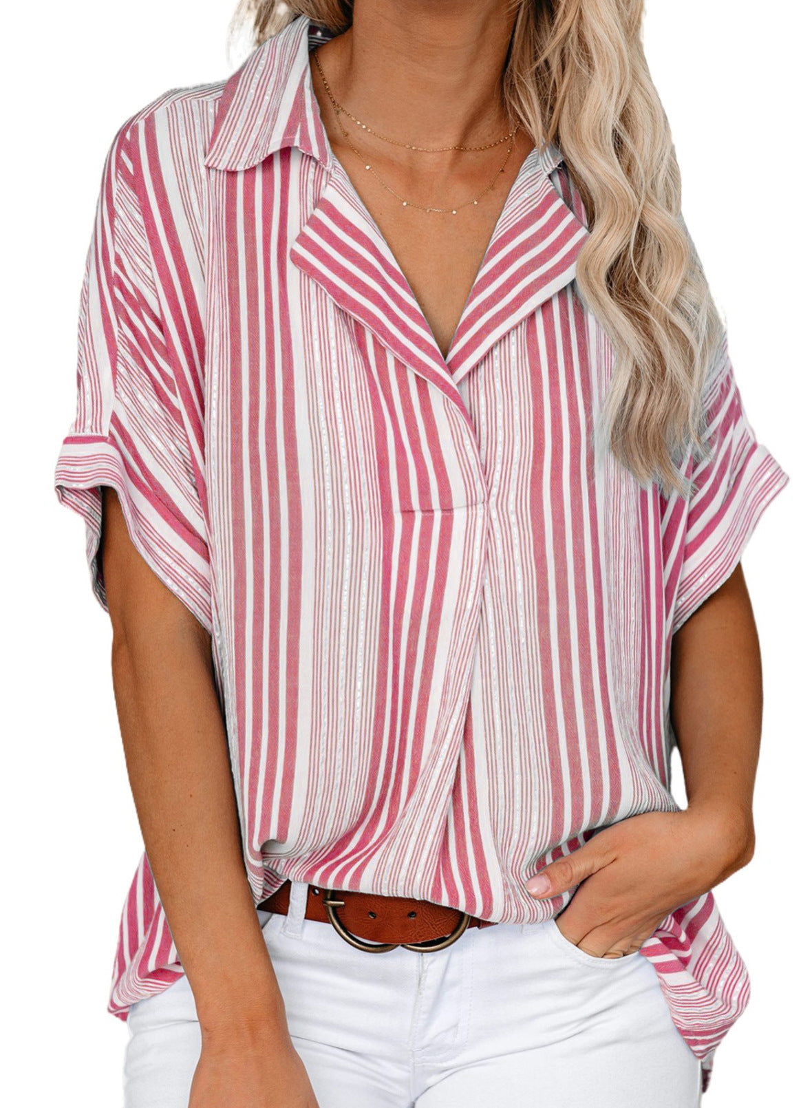 🌞 Nowa letnia damska koszula z krótkim rękawem i dekoltem w kształcie litery V: świeża i lekka, niezbędny element mody latem!