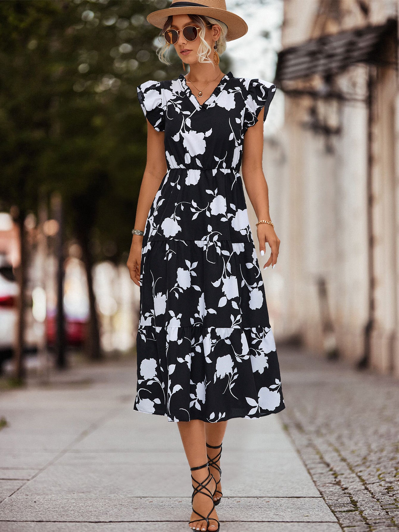 Połącz ją z prostymi sandałami lub szpilkami, aby idealnie podkreślić elegancję sukienki.