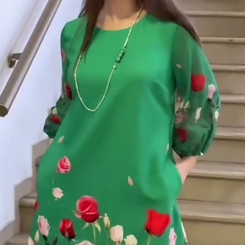 Pakiet obejmuje: 1* Elegancka damska kwiatowa sukienka na okrągłą szyję