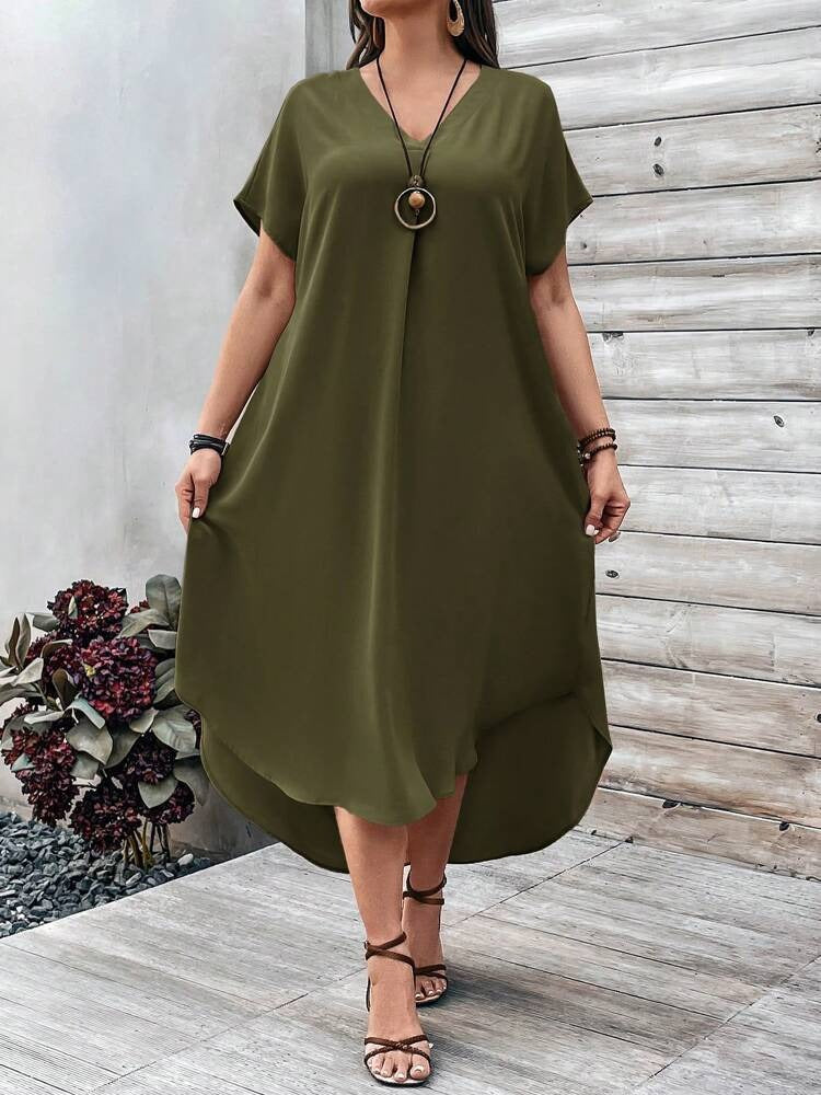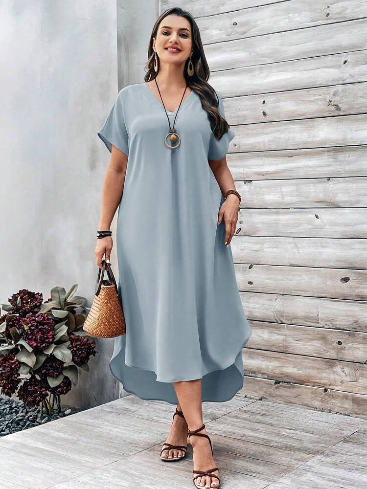 Poznaj sukienkę Luna-Twój kawałek w rozmiarze plus dla komfortu ciepłej pogody i swobodnego stylu. Dzięki pochlebnej linii dekoltowej i łatwym luźnym dopasowaniu ta sukienka jest przeznaczona do poruszania się z tobą przez wiosnę i lato. Lekki materiał poliestrowy płynie naturalnie, dzięki czemu jest idealny na słoneczne dni, zrelaksowane weekendy lub wyluzowany wypad.