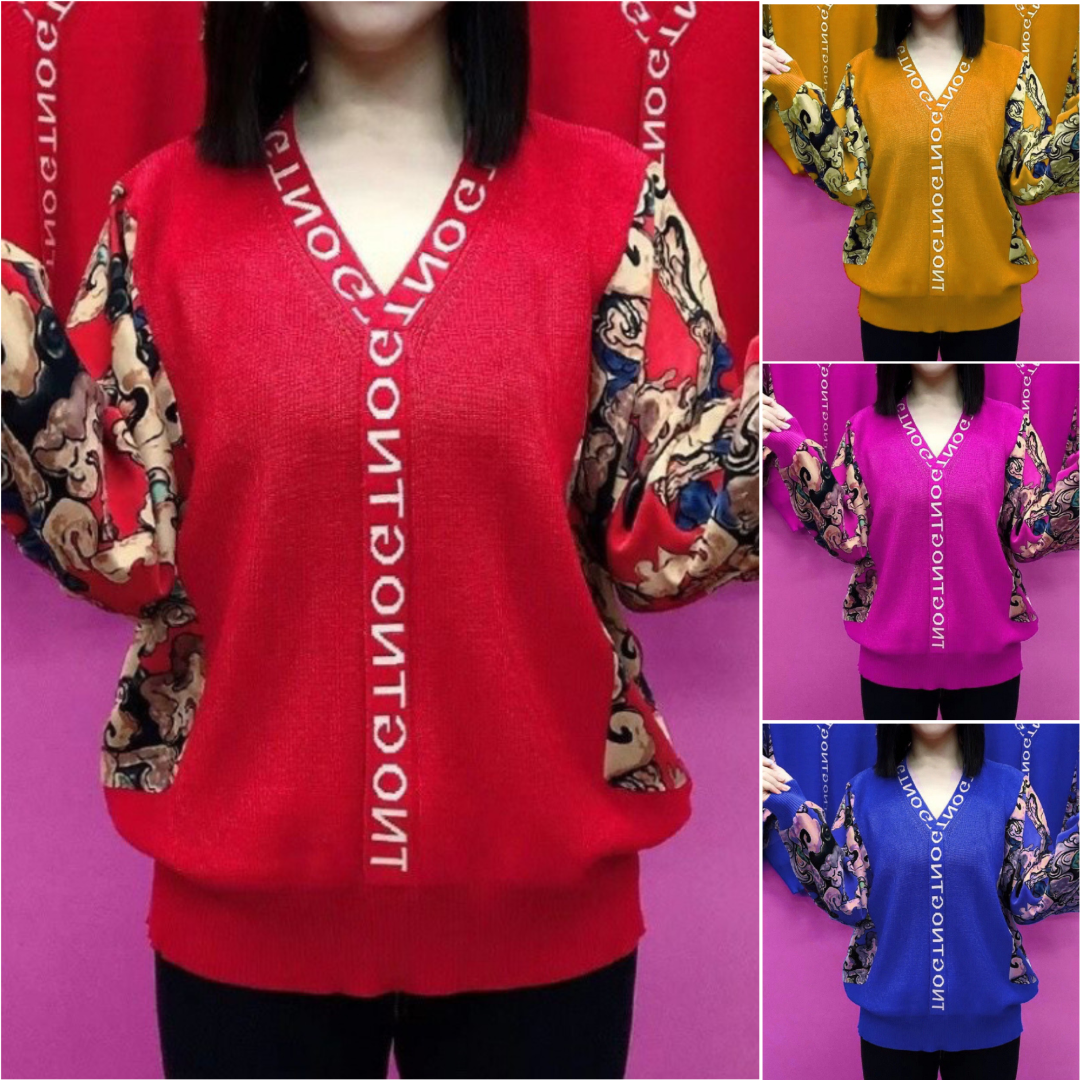 Modne na jesień i zimę 2024 luźne i zakrywające ciało topy z długim rękawem i dekoltem w kształcie litery V