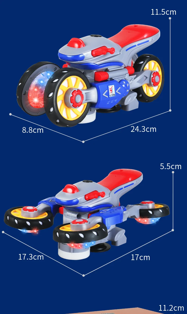 Inspirująca kreatywność - muzyczny motocykl dla dzieci nie tylko wygląda fajnie, ale jego konstrukcja przyciąga uwagę dzieci dzięki jasnej, olśniewającej lampie błyskowej LED i dynamicznym efektom muzycznym. Dzięki wielofunkcyjnej konstrukcji „trzy w jednym” muzyczny samochodzik z pewnością stanie się ulubioną zabawką dzieci, stymulując ich kreatywność, zapewniając jednocześnie poczucie spełnienia i szczęścia.
