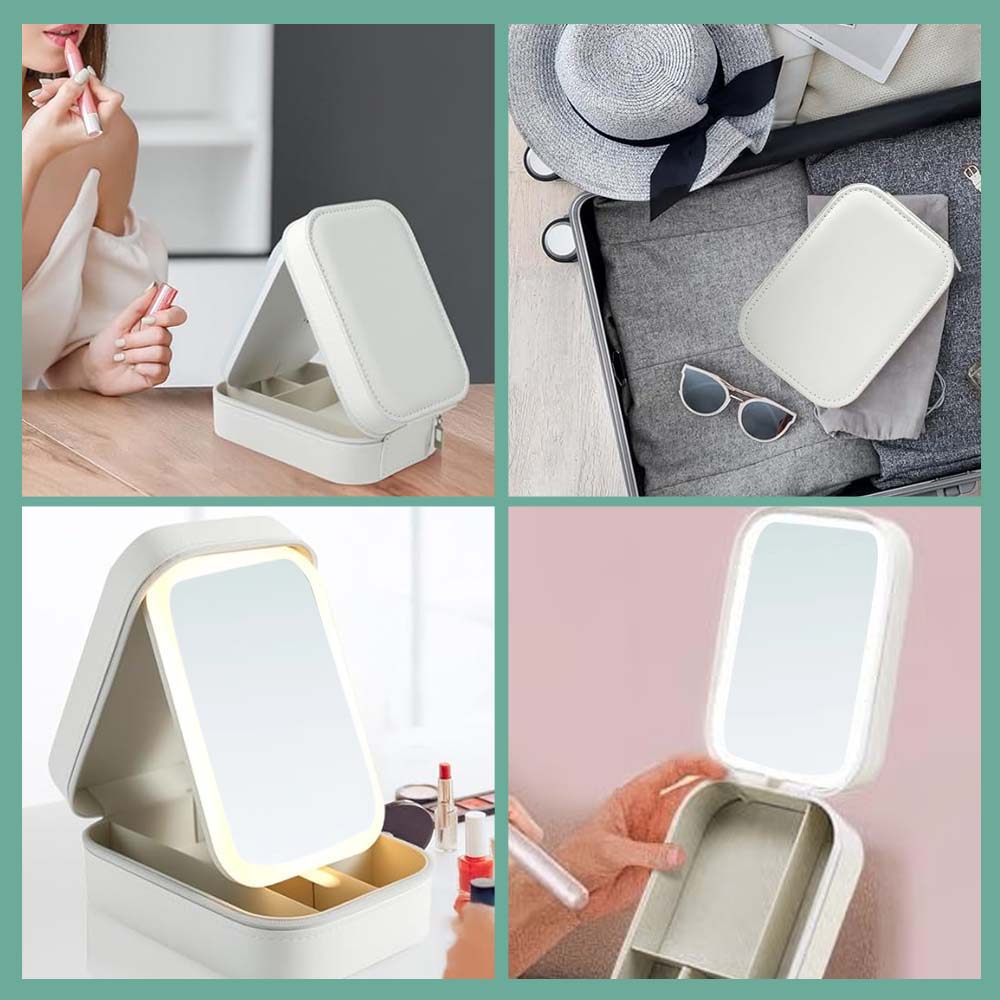 Kompaktowa i lekka: zaprojektowana pod kątem przenośności, ta torba do makijażu z lustrem LED jest kompaktowa i lekka, dzięki czemu jest idealnym towarzyszem przygody wyznaczających odrzutowce lub pracowitych dni w podróży. Idealny do retuszu w podróży lub podczas podróży, działa jak mała przenośna komoda.