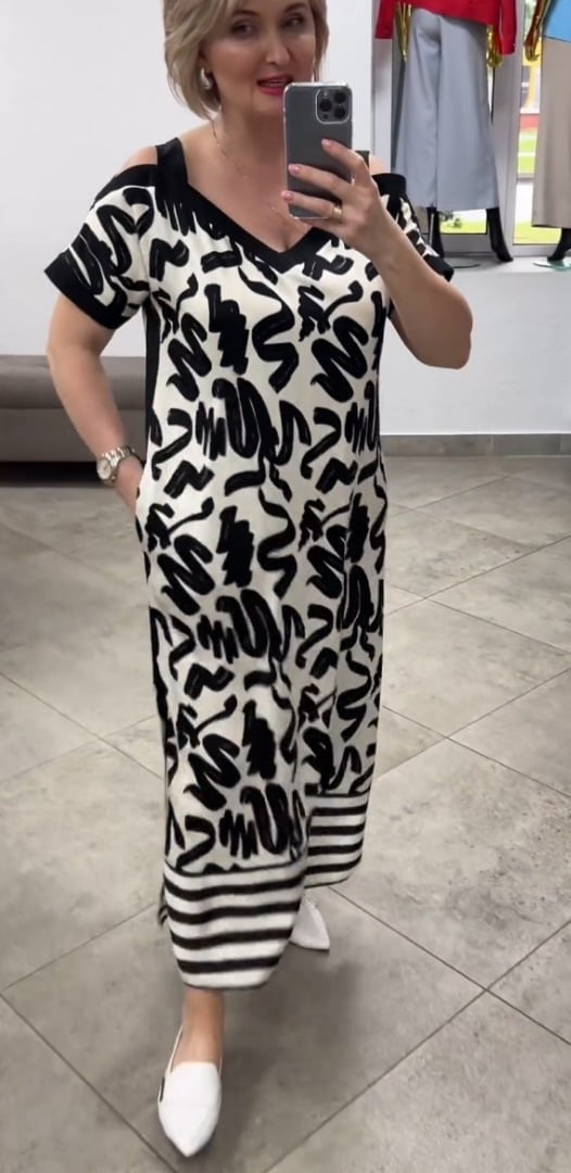 Modny styl z odsłoniętymi ramionami dodaje sukience nowoczesnego i szykownego akcentu, przekształcając ją w wyróżniający się element każdej garderoby. Elegancko odsłania nutę skóry, zachowując jednocześnie wyrafinowany wygląd.