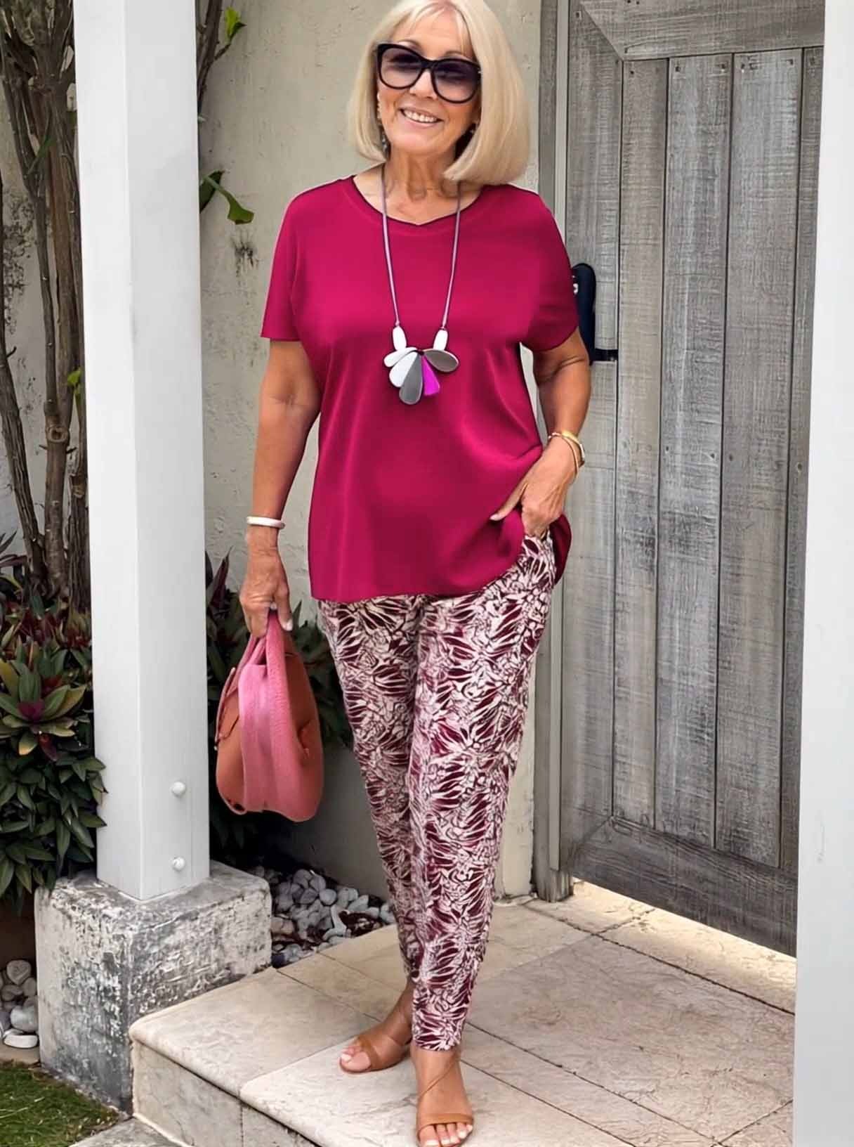 WSZECHSTRONNY I STYLOWY: Ten dwuczęściowy zestaw jest nie tylko praktyczny, ale i stylowy. Prosty top w połączeniu z misternie wzorzystymi spodniami tworzy szykowny i modny wygląd, który jest idealny do eleganckich i swobodnych strojów.