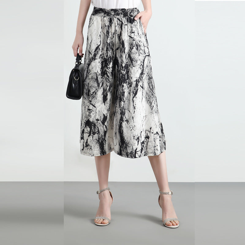 Szerokie nogawki, sylwetka w kształcie litery A, miękka podszewka, uczucie swobody i pewności siebie podczas poruszania się lub chodzenia.