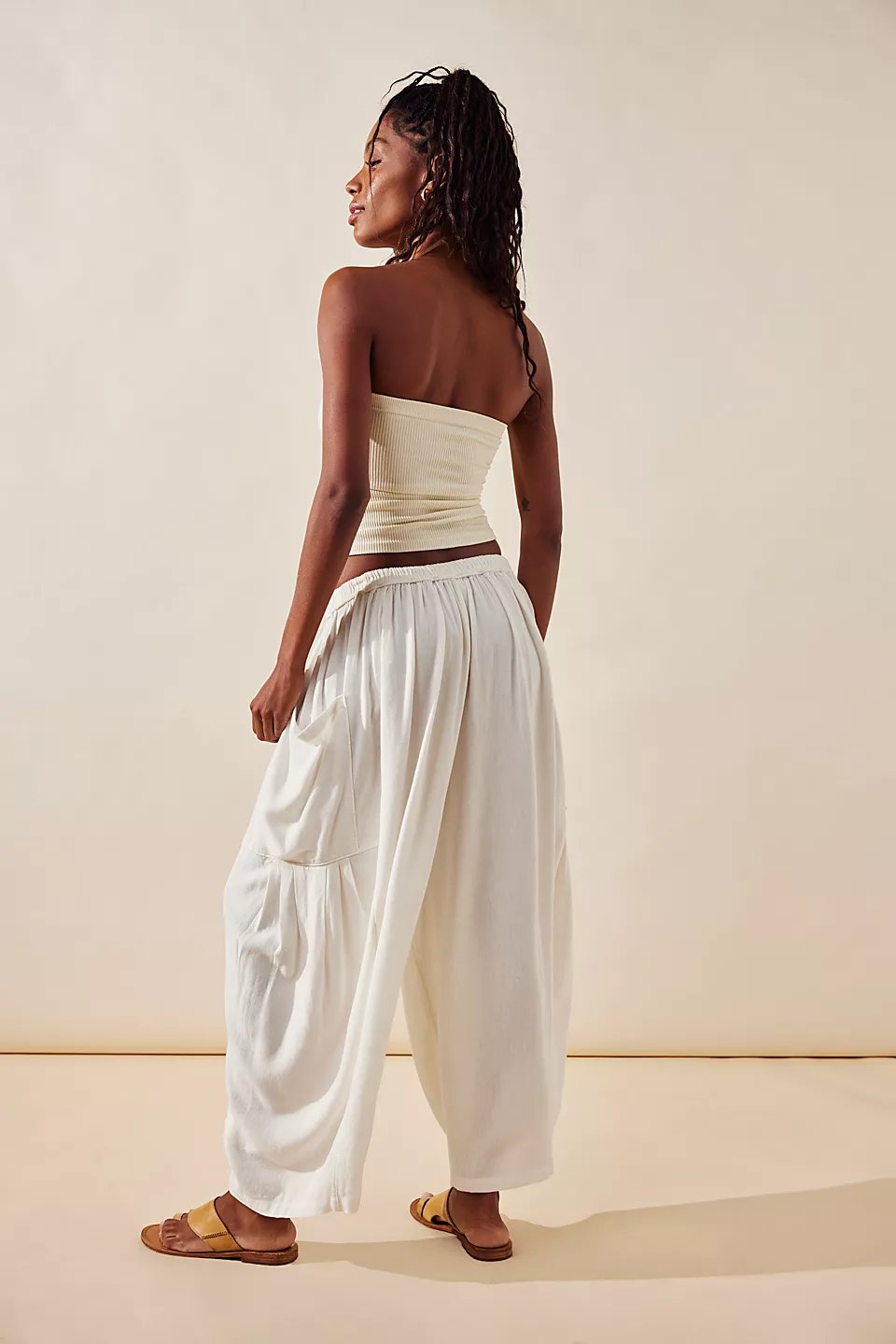 Te najnowsze letnie spodnie, o bufiastym kroju inspirowanym haremem, z opuszczonymi kieszeniami bocznymi dla dodania wymiaru.