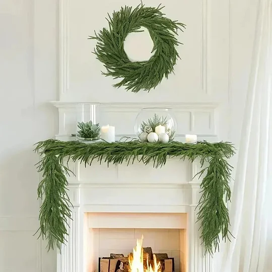 Stwórz świąteczną atmosferę z naszą sztuczną girlandą świąteczną na kominek, tworząc ciepłą i przyjazną przestrzeń w Twoim domu: na kominku, stole, schodach, ścianie, kominku lub zawieszoną jako girlanda na drzwiach wejściowych i wiele innych opcji DIY.