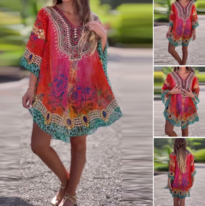 Ethnic Top to idealne połączenie komfortu i sztuki dla ponadczasowej łaski. Ten top z pięknym nadrukiem, V -Neckline i bezpłatnym siedmiu trzecim rękawach zapewni codzienny wygląd wyrafinowania bez wysiłku. Niezależnie od tego, czy nosisz go na swobodny wygląd, czy ozdobisz akcesoria, jest to niezbędne akcesorium na każdą okazję.