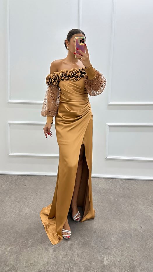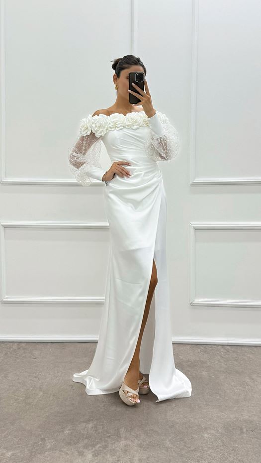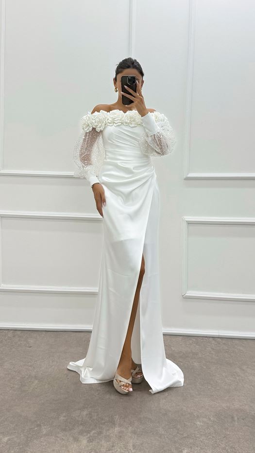 Odkryj ponadczasową elegancję dzięki naszej eleganckiej sukni z odkrytymi ramionami, zaprojektowanej na specjalne okazje, podczas których chcesz zrobić trwałe wrażenie. Ta oszałamiająca sukienka charakteryzuje się wyrafinowaną sylwetką i wyjątkowymi detalami.