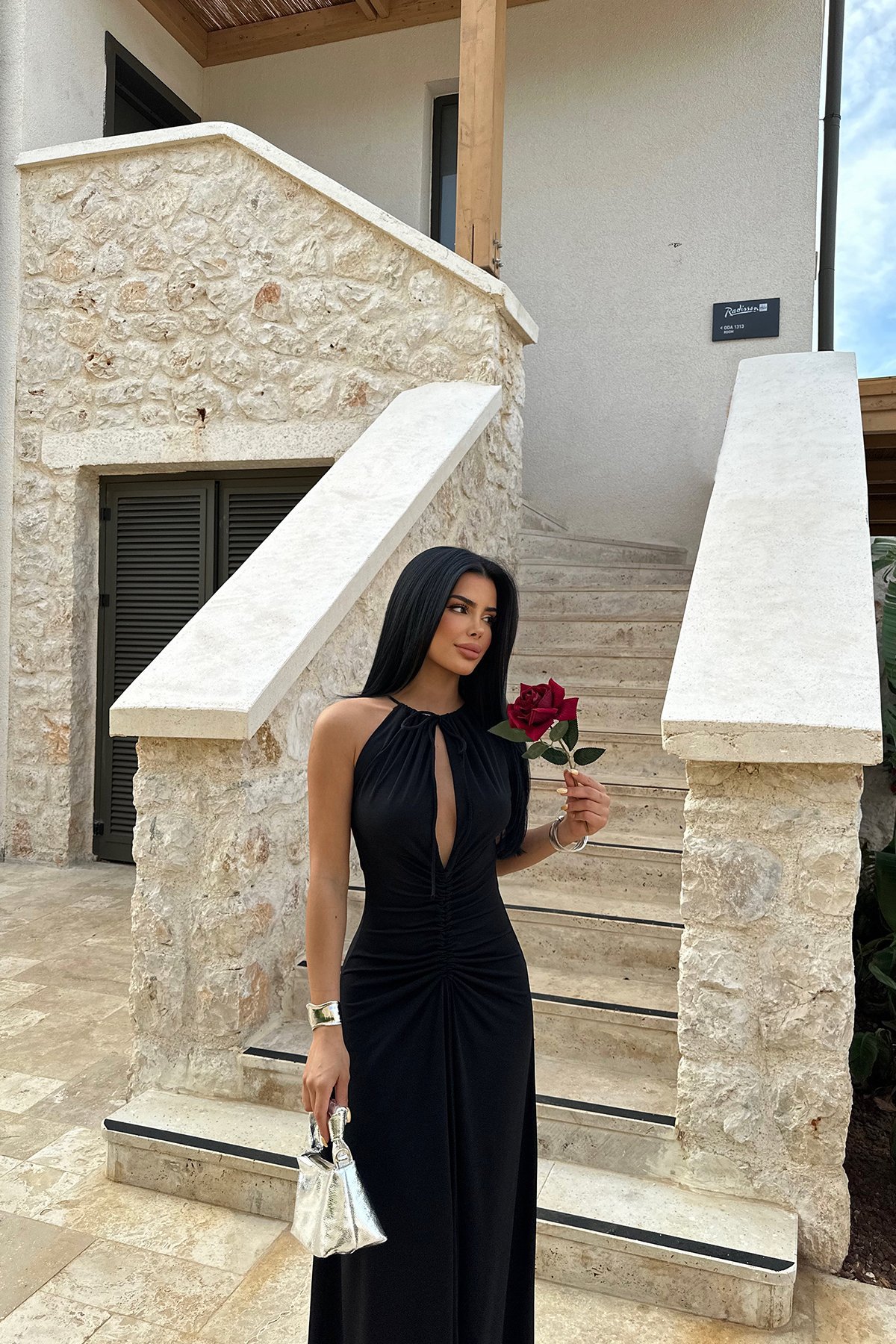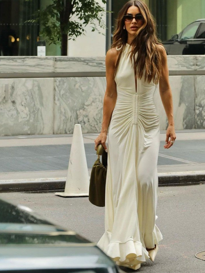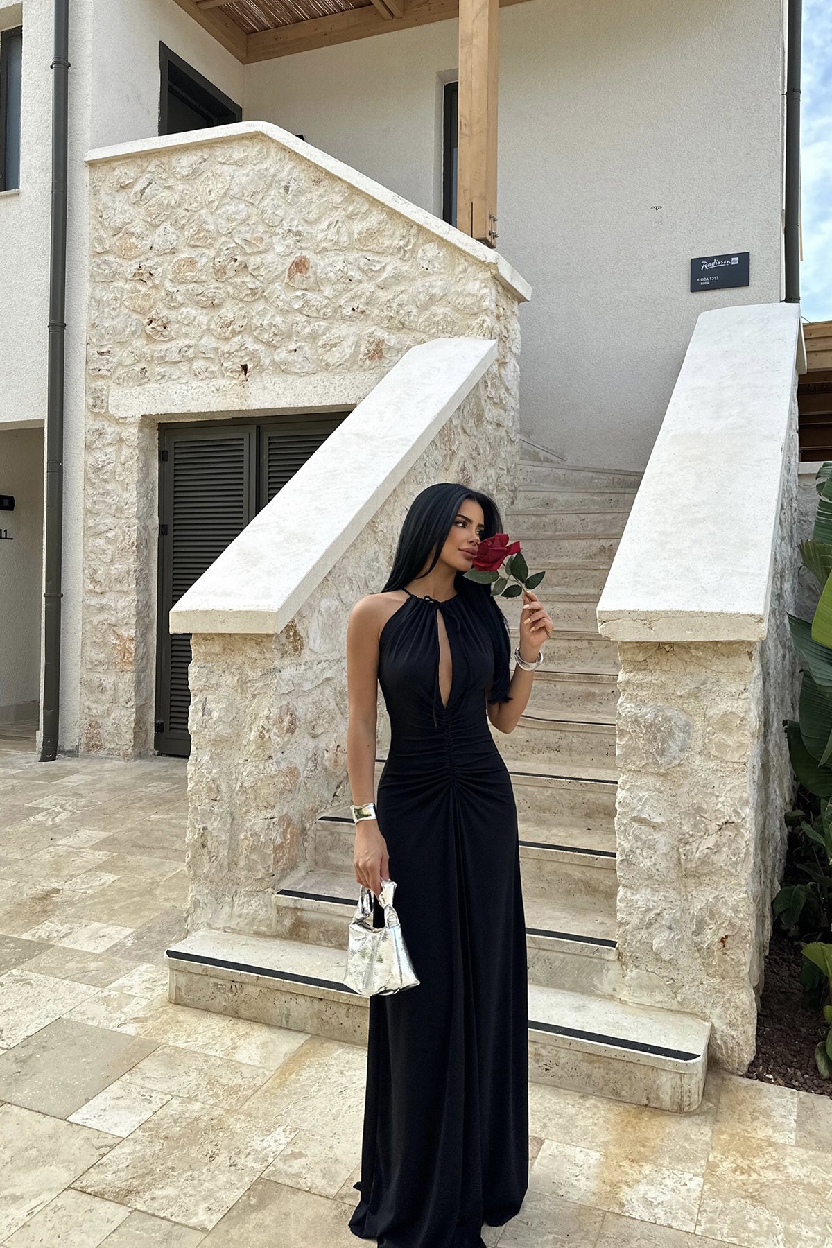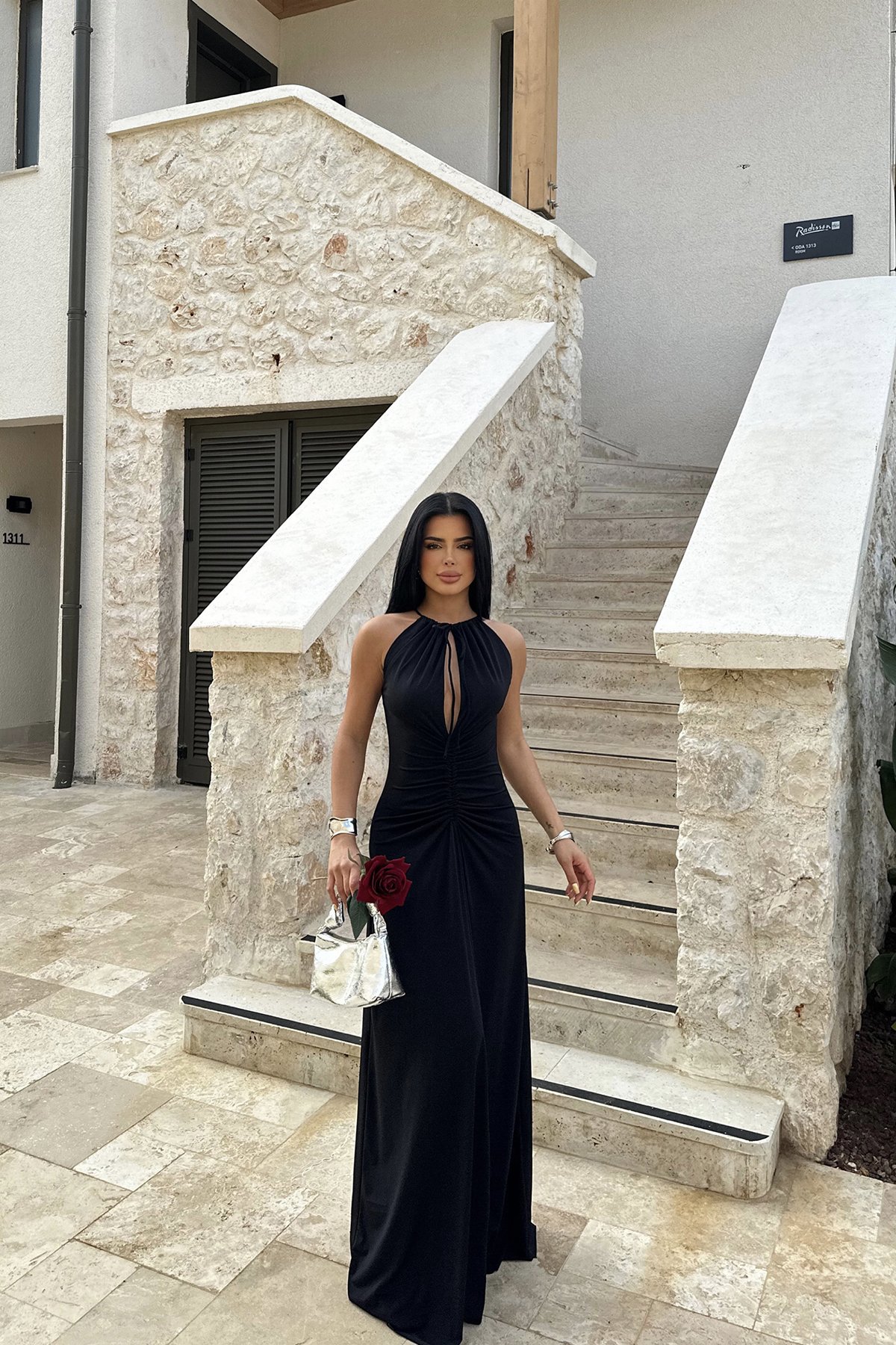 Sukienka z plisowaną spódnicą i okrągłym dekoltem, wiązaniem w talii