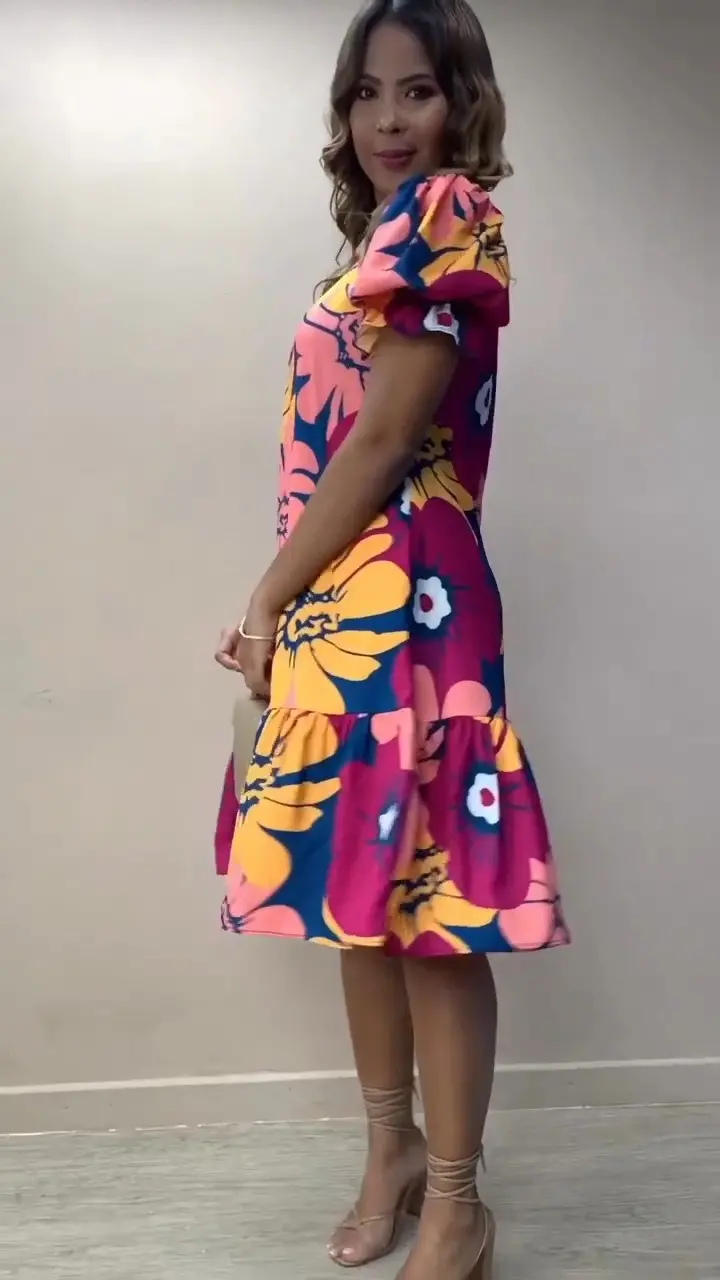 【S-5XL】Nowa sukienka 2025 z kwiatowym nadrukiem