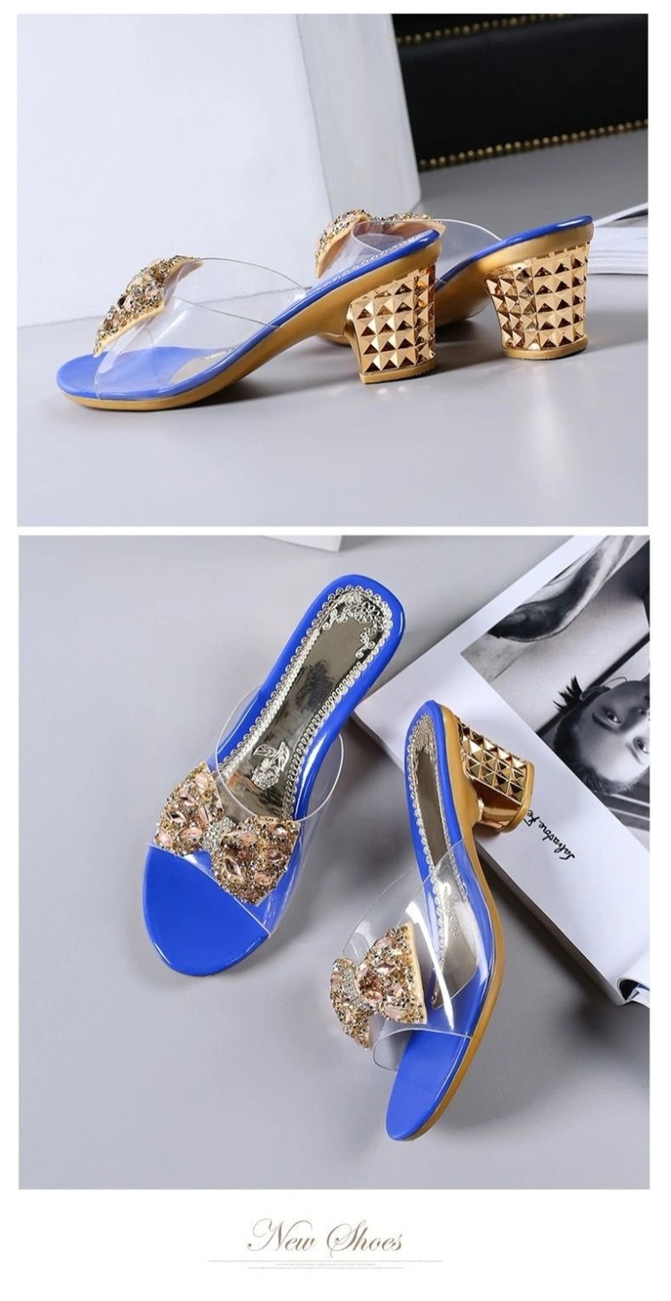🎀👡Sandały na średnim obcasie z przezroczystymi kryształkami w nowym stylu 2025