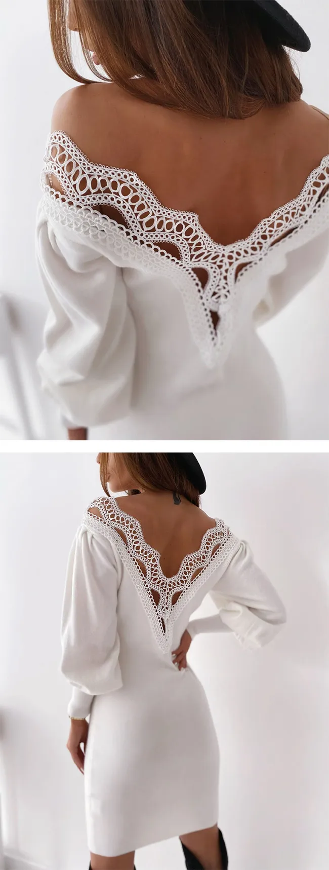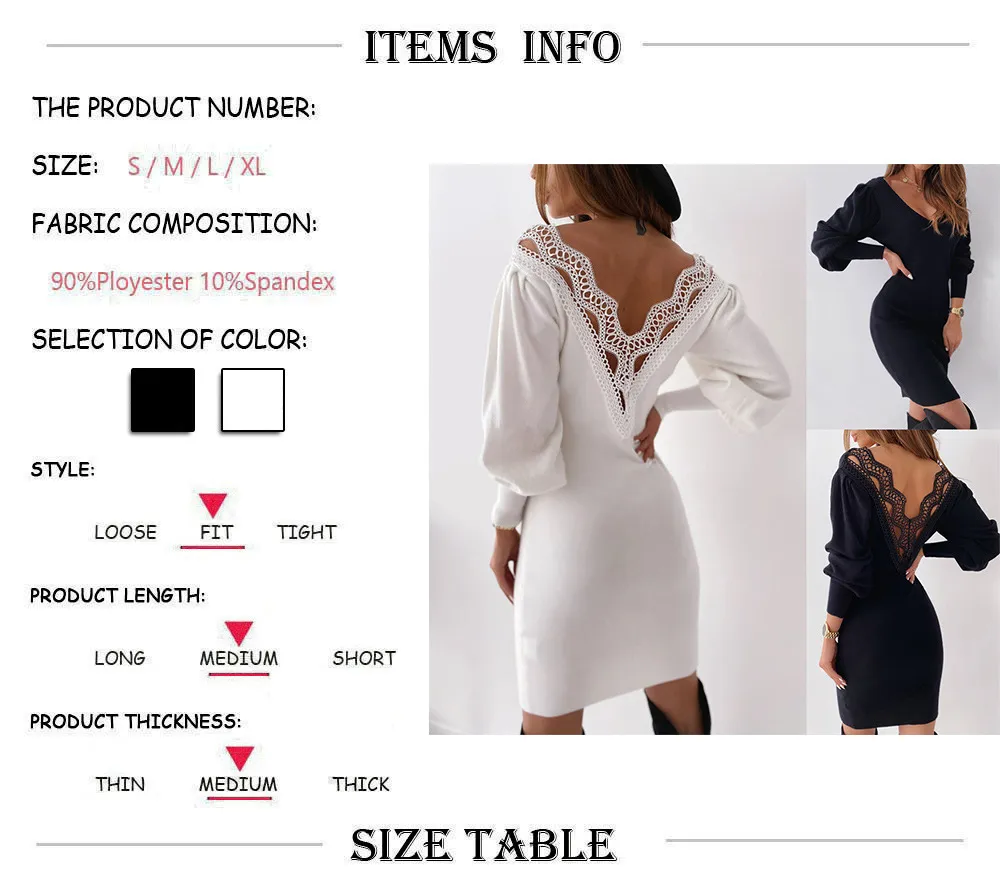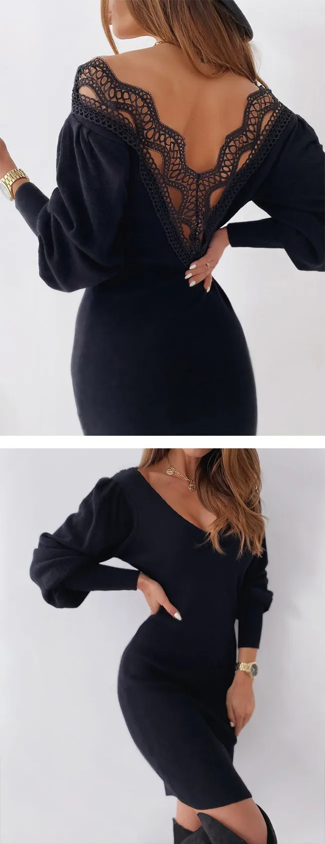 Seksowna sukienka z wyciętą koronką i dekoltem w kształcie litery V, bez pleców