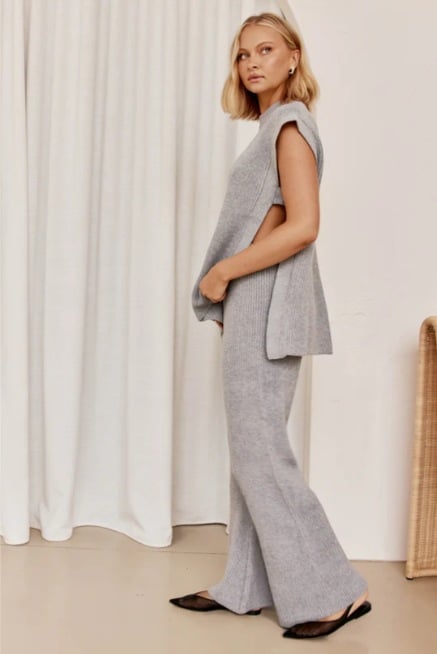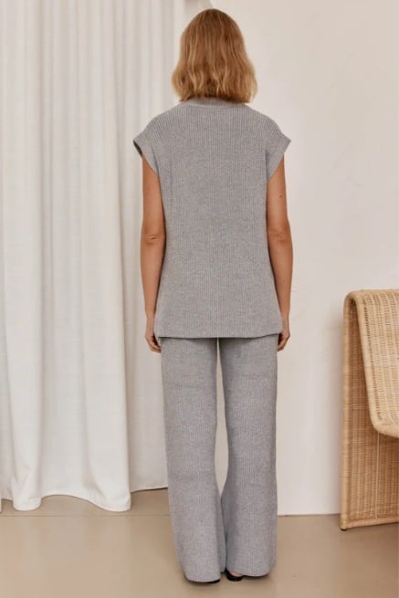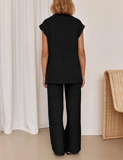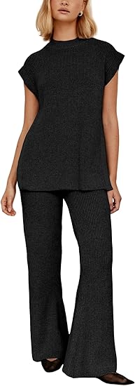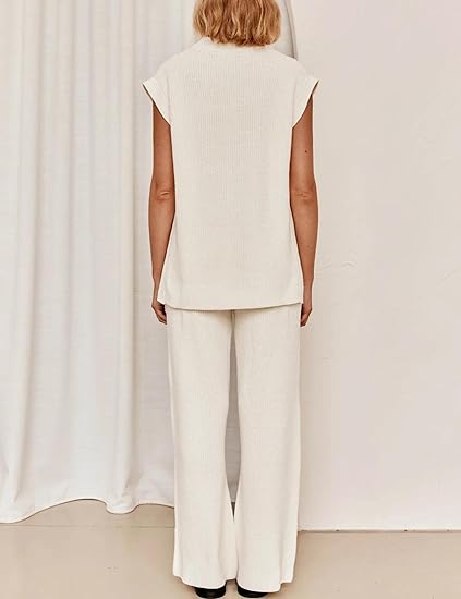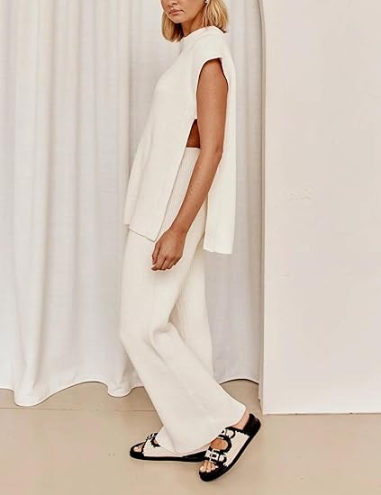 Okrągły dekolt, dzianinowa kamizelka z otwartymi szwami bocznymi, spodnie z szerokimi nogawkami w pasie Idealne do codziennego noszenia na co dzień, niezależnie od tego, czy nosisz je w domu jako piżamę, czy na zewnątrz na ulicy, podczas spotkań, randek, wakacji, plaży, podróży itp. Można nosić jako w zestawie lub osobno, można je łatwo łączyć z botkami, kapciami, szpilkami i tenisówkami. Wygodny, przytulny i szykowny projekt zapewniający swobodne ubieranie się, które można założyć i gotowe.
