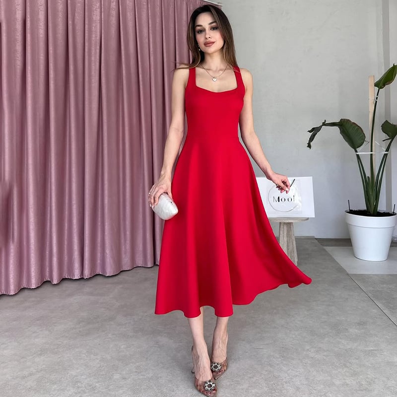 Wyjdź stylowo z naszą elegancką czerwoną sukienką midi, zaprojektowaną tak, aby każda okazała była wyjątkowa! 💃 Idealna mieszanka wyrafinowania i wygody, ta sukienka ma elegancką sylwetkę, która pochlebia wszystkie rodzaje ciała. 👗 Paski spaghetti dodają odrobinę uroku, dzięki czemu jest idealny na imprezy, daty lub dowolne wydarzenie, w którym chcesz zabłysnąć. ✨